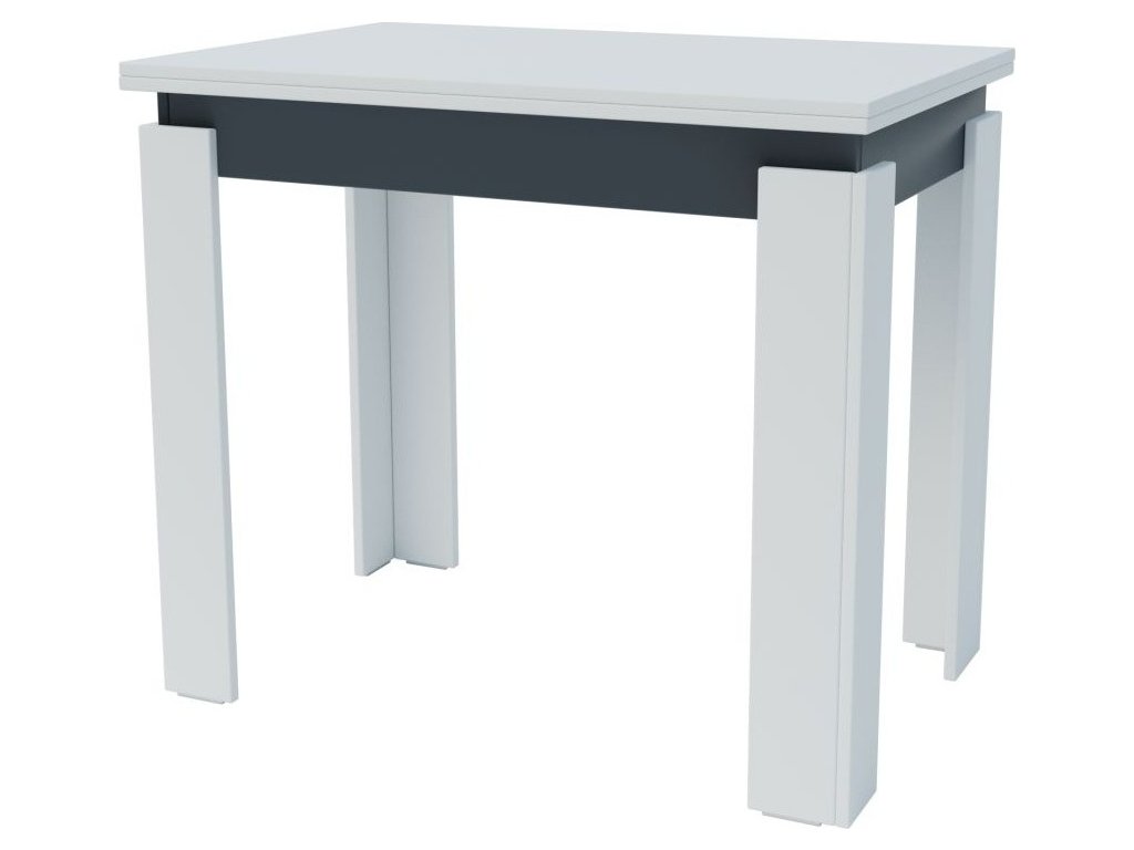 CASA 83103 Rozkládací jídelní stůl v moderním provedení je vyroben z kvalitní LTD v barevné kombinaci matná bílá/šedý antracit. Plocha stolu před rozložením je 90x60 cm, plocha stolu po rozložení je 120x90 cm. Dodáváme v demontovaném stavu.