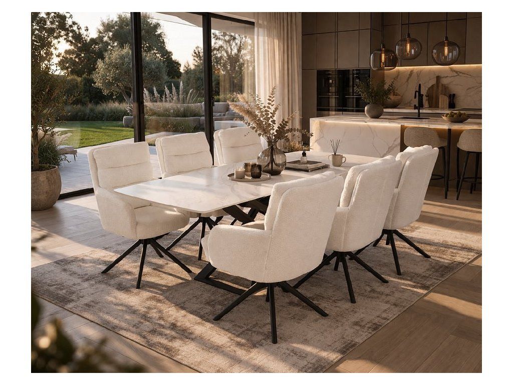 Elegantní jídelní set, který spojuje luxusní vzhled mramorové desky s maximálním komfortem čalouněných křesílek. Ideální volba pro moderní interiéry, kde hraje hlavní roli styl, světlo a pohodlí.