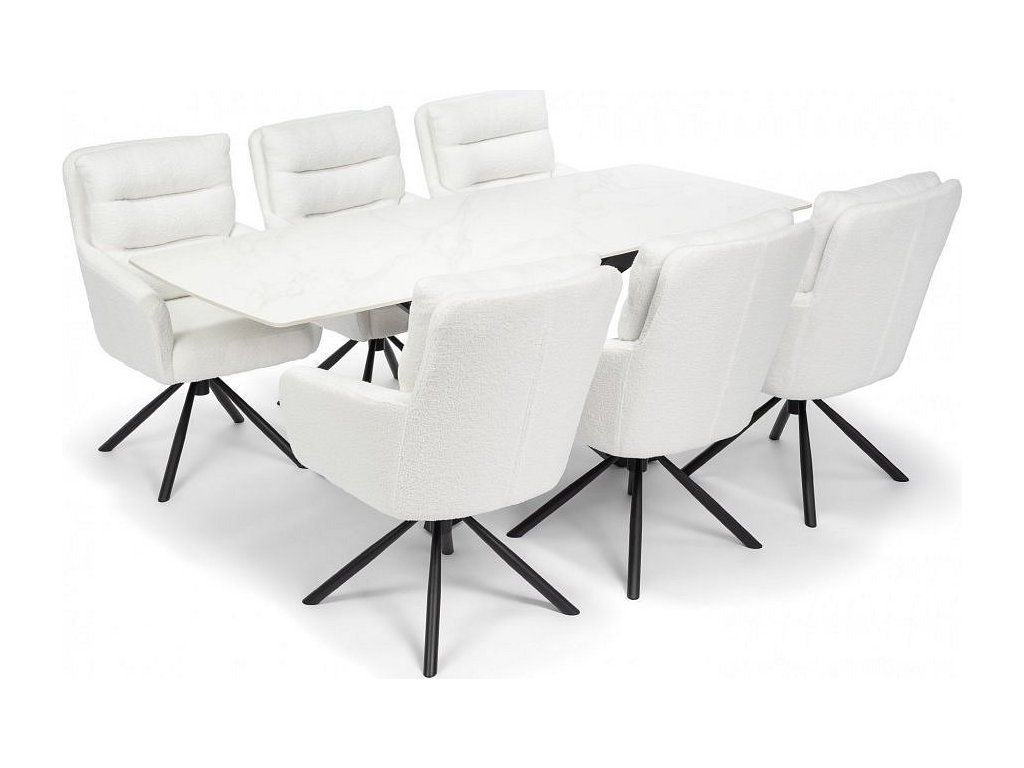 Jídelní stůl TERRON 200 bílá + 6ks jídelní židle ENZO bílá