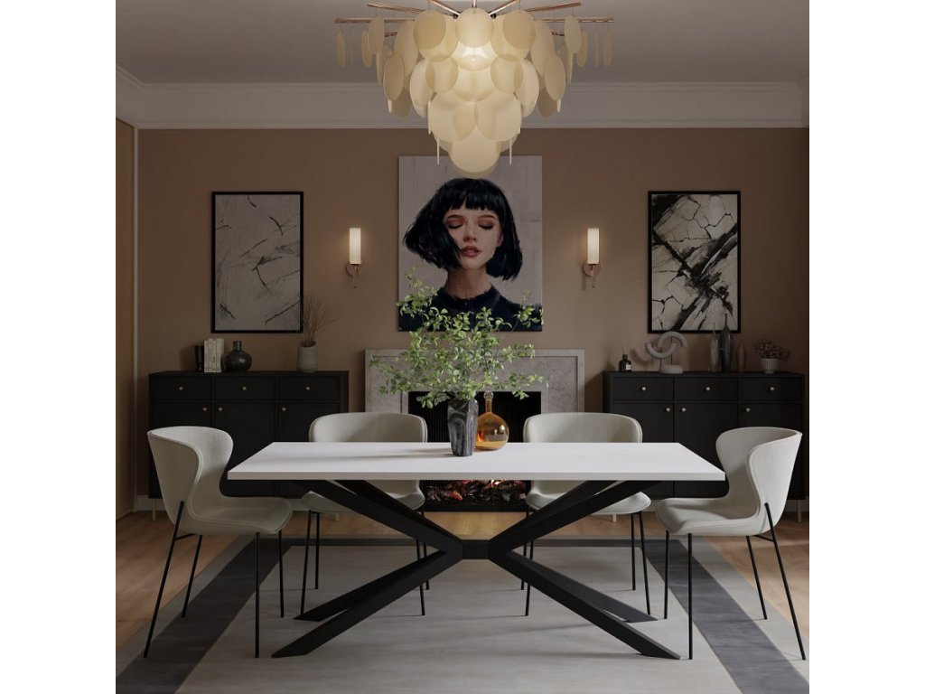 Stůl je dodávaný v demontu. Součástí balení je montážní návod včetně všech spojovacích prvků. Vyobrazené doplňky a dekorace nejsou v ceně.