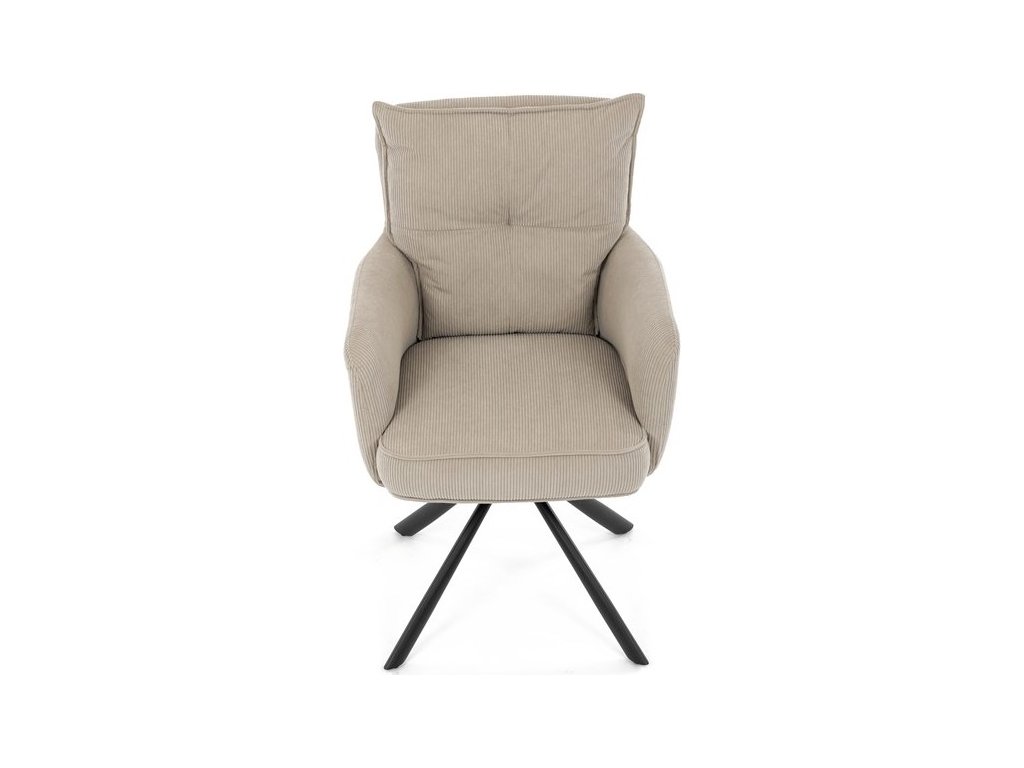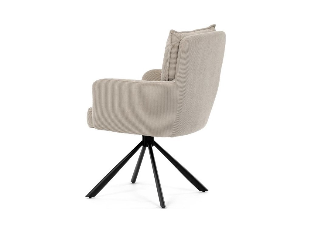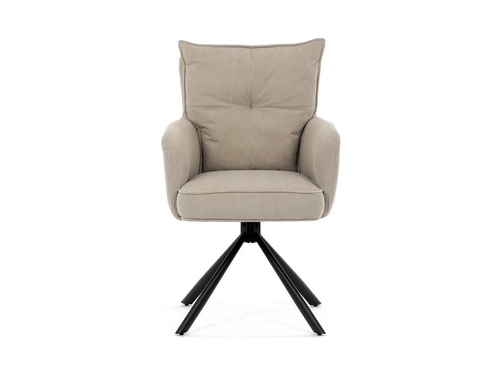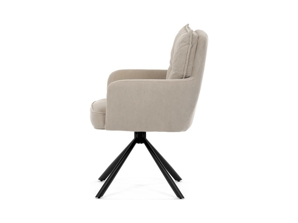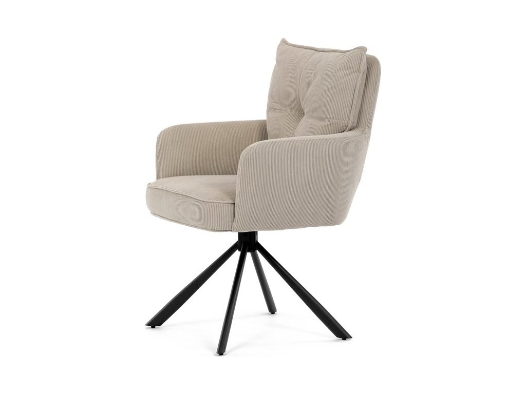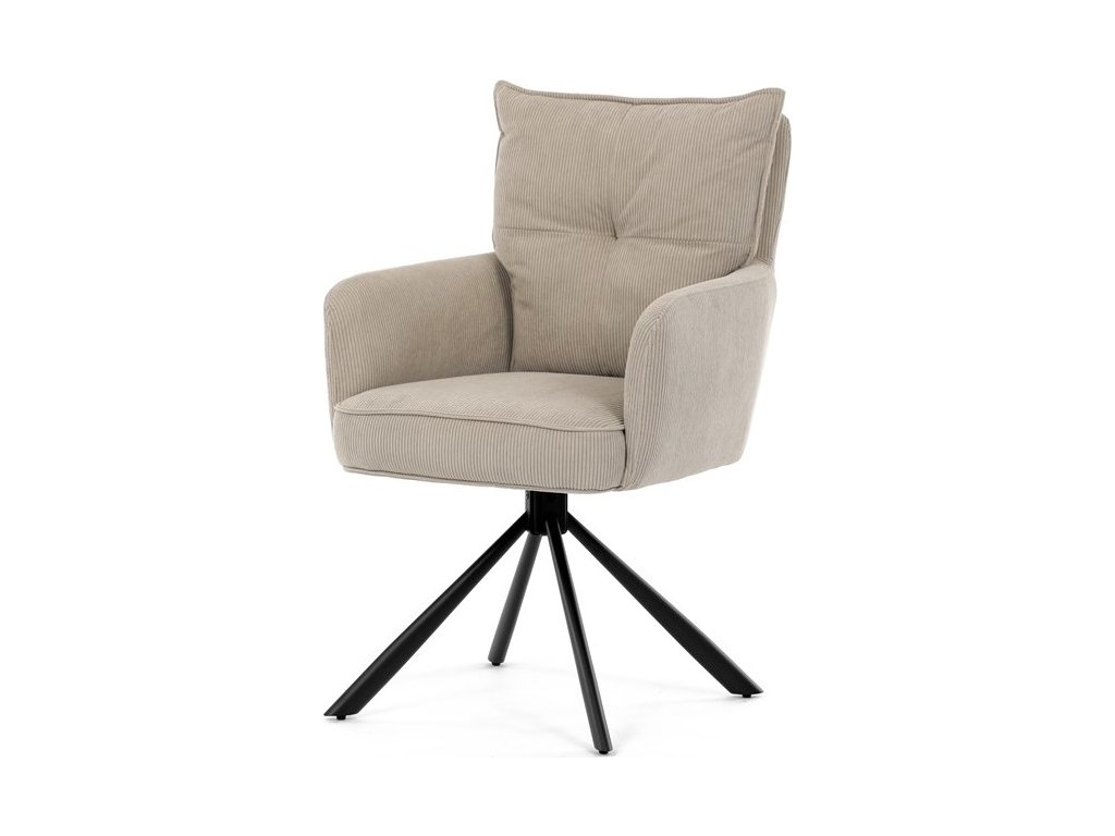 Jídelní židle HC-X1128 LAN2 od značky Autronic nabízí komfortní sezení díky vysokému polstrování sedáku a opěradla potaženému lanýžovou látkou manšestr v béžovém odstínu. Sedák je vybaven taštičkovými pružinami, které zvyšují pohodlí a přizpůsobivost při sezení. Židle disponuje otočnou funkcí s vratným mechanismem umožňujícím otáčení o 180°, což usnadňuje pohyb a přístup k jídelnímu stolu. Područky jsou součástí čalouněné části, která je pevně spojena s kovovou podnoží v černém matném provedení, jež zajišťuje stabilitu a dlouhou životnost. Díky kombinaci kvalitních materiálů a funkčních prvků je židle vhodná pro moderní jídelní prostory s důrazem na pohodlí i design.