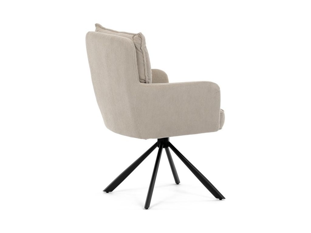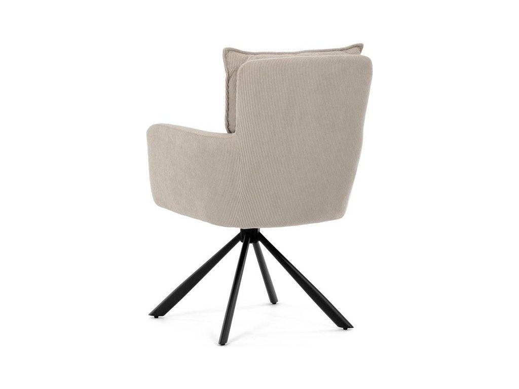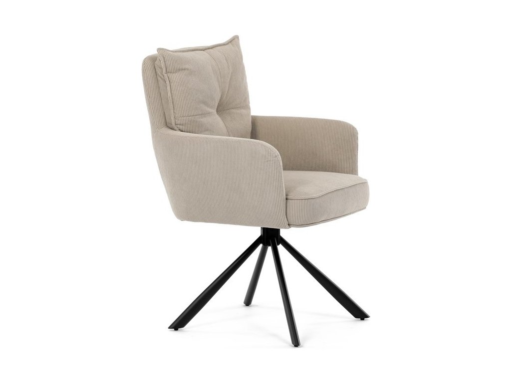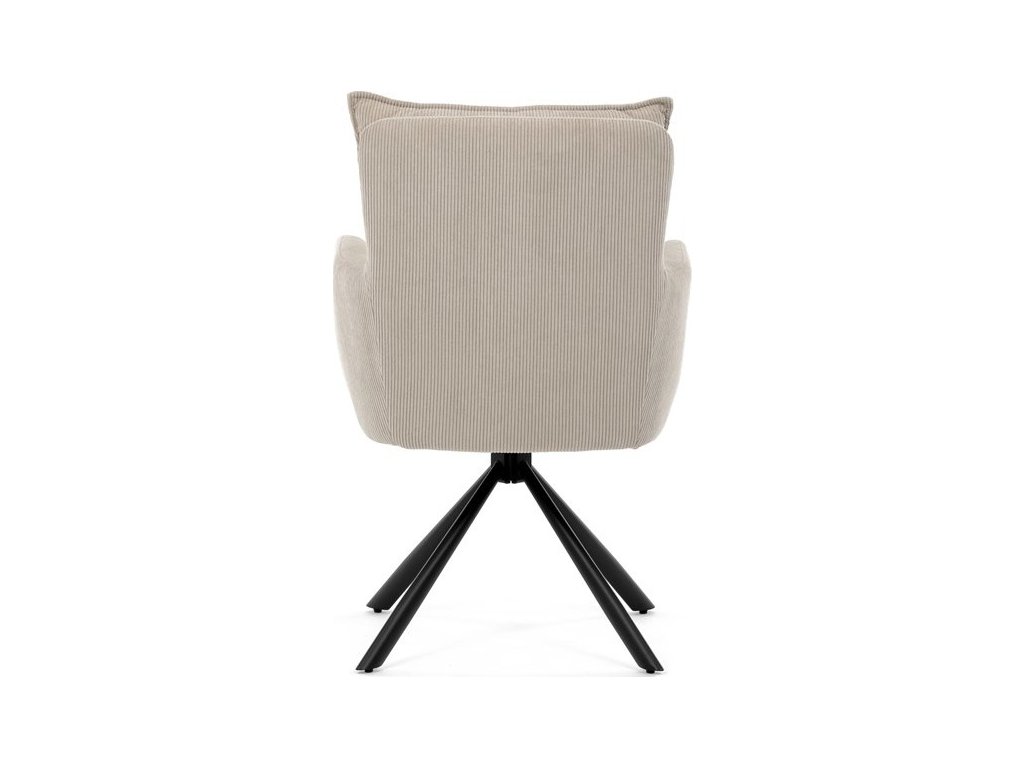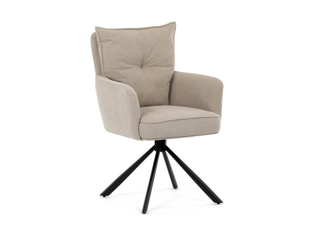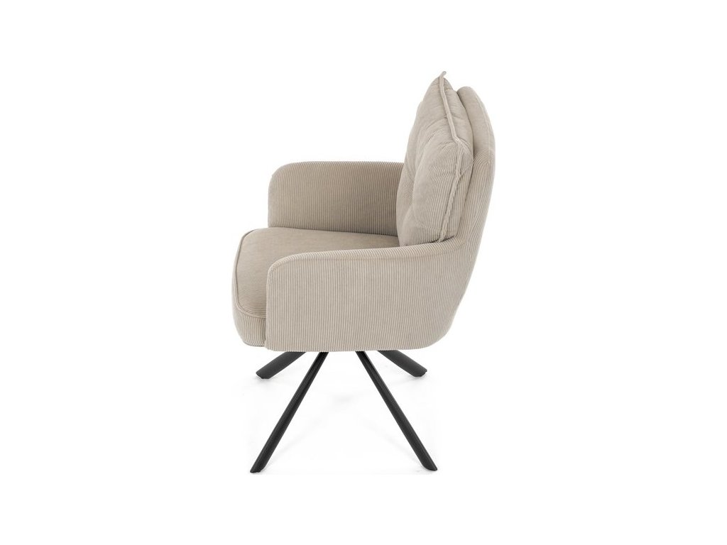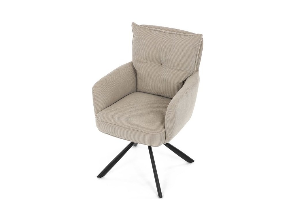 Jídelní židle HC-X1128 LAN2 od značky Autronic nabízí komfortní sezení díky vysokému polstrování sedáku a opěradla potaženému lanýžovou látkou manšestr v béžovém odstínu. Sedák je vybaven taštičkovými pružinami, které zvyšují pohodlí a přizpůsobivost při sezení. Židle disponuje otočnou funkcí s vratným mechanismem umožňujícím otáčení o 180°, což usnadňuje pohyb a přístup k jídelnímu stolu. Područky jsou součástí čalouněné části, která je pevně spojena s kovovou podnoží v černém matném provedení, jež zajišťuje stabilitu a dlouhou životnost. Díky kombinaci kvalitních materiálů a funkčních prvků je židle vhodná pro moderní jídelní prostory s důrazem na pohodlí i design.