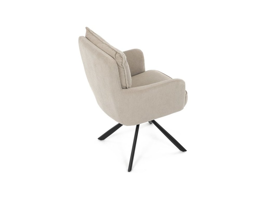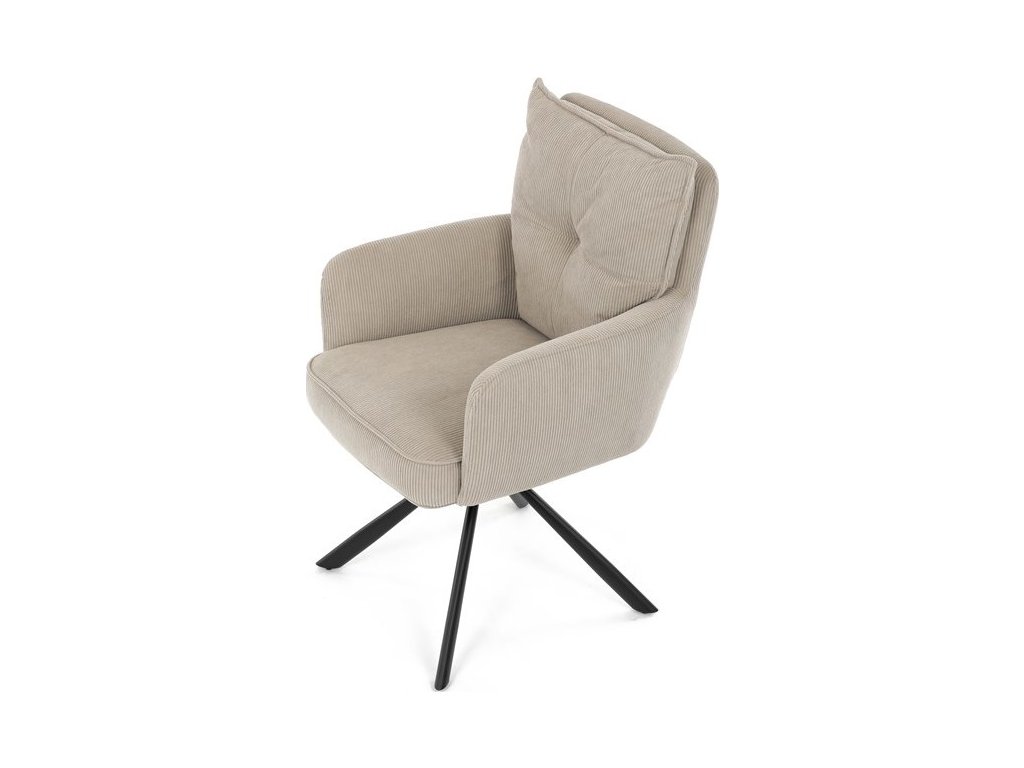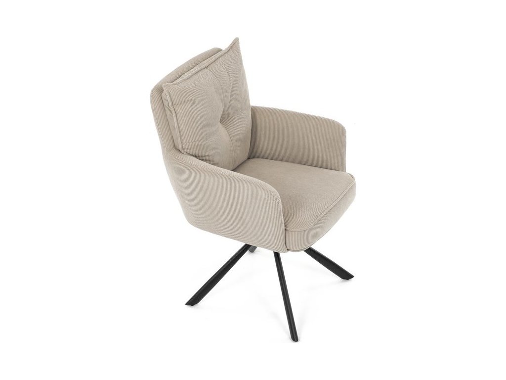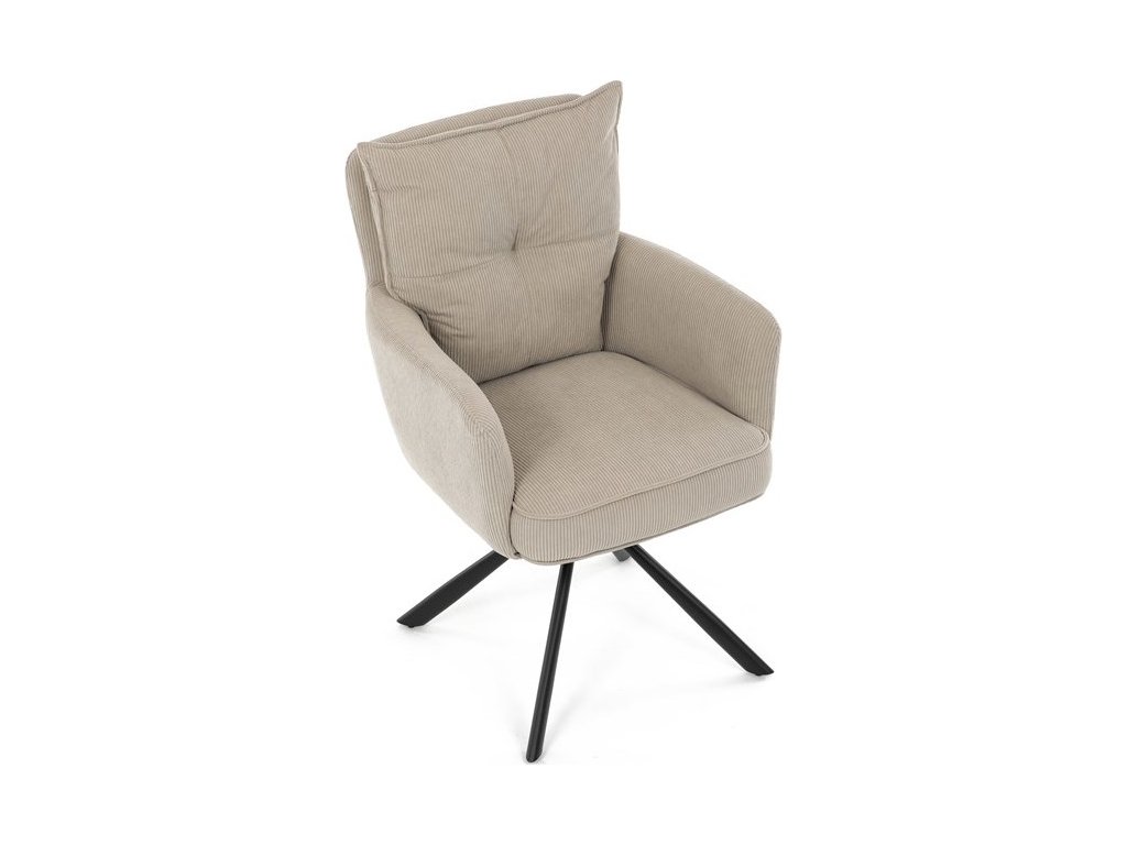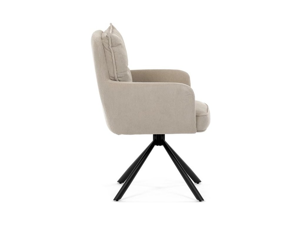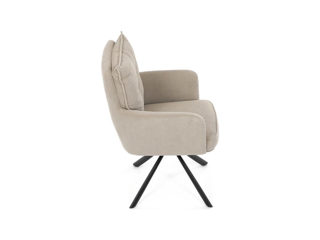 Jídelní židle HC-X1128 LAN2 od značky Autronic nabízí komfortní sezení díky vysokému polstrování sedáku a opěradla potaženému lanýžovou látkou manšestr v béžovém odstínu. Sedák je vybaven taštičkovými pružinami, které zvyšují pohodlí a přizpůsobivost při sezení. Židle disponuje otočnou funkcí s vratným mechanismem umožňujícím otáčení o 180°, což usnadňuje pohyb a přístup k jídelnímu stolu. Područky jsou součástí čalouněné části, která je pevně spojena s kovovou podnoží v černém matném provedení, jež zajišťuje stabilitu a dlouhou životnost. Díky kombinaci kvalitních materiálů a funkčních prvků je židle vhodná pro moderní jídelní prostory s důrazem na pohodlí i design.