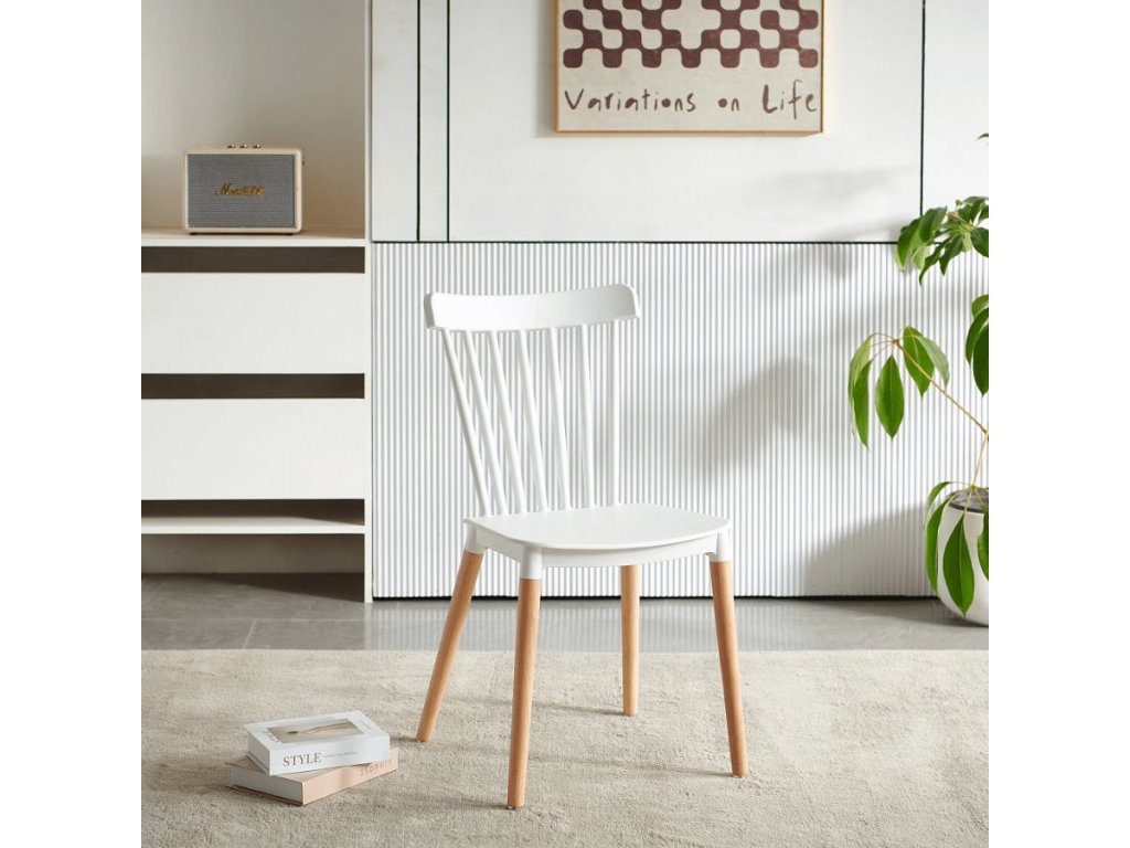 Materiál: plast/masivní bukové dřevo Barva: bílá/buk Rozměry (ŠxHxV): 54x44x83 cm Výška sedu: 45 cm Hloubka sedu: 40 cm Šířka zádové opěrky: 44 cm Výška zádové opěrky: 42 cm Nosnost: 100 kg Dodáváno v demontu