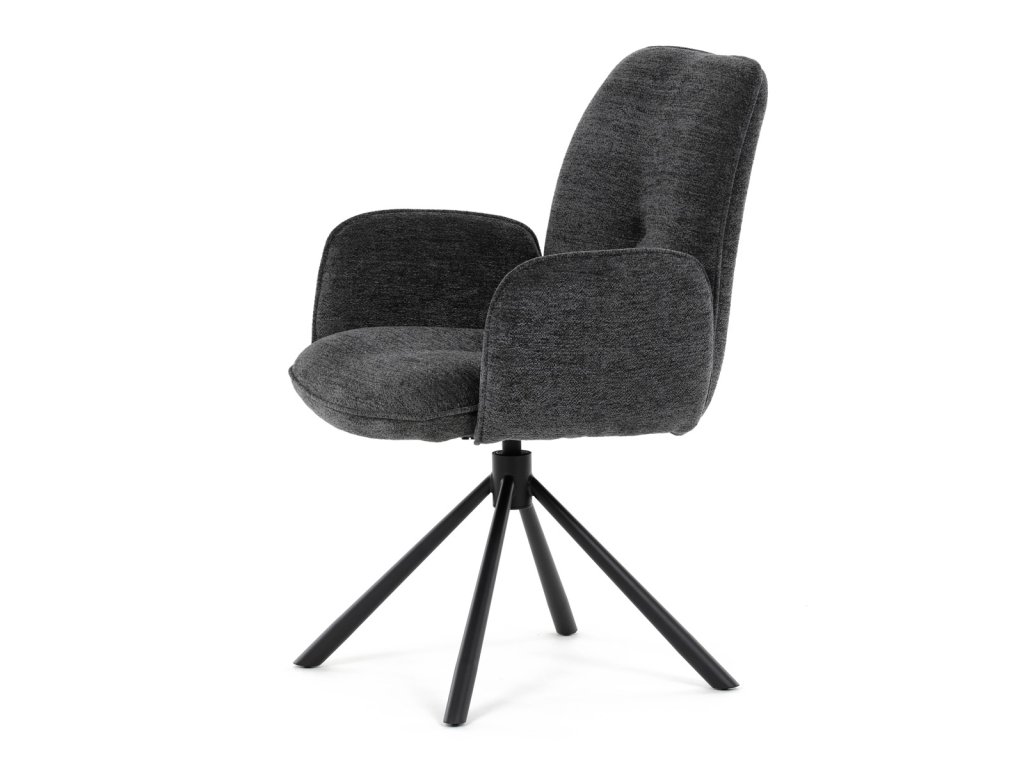 Elegantní jídelní židle značky Autronic v industriálním stylu přináší maximální pohodlí a moderní design. Čalounění z hladké látky v antracitovém odstínu je nejen stylové, ale i příjemné na dotek. Stabilní kovová podnož v černé barvě dodává židli pevnost a odolnost. Díky otočnému 360° mechanismu nabízí vysokou flexibilitu a komfort při sezení. Pohodlné područky a ergonomicky tvarovaný sedák z PU pěny zajišťují optimální oporu těla. Perfektní volba pro stylové a funkční jídelní prostory.