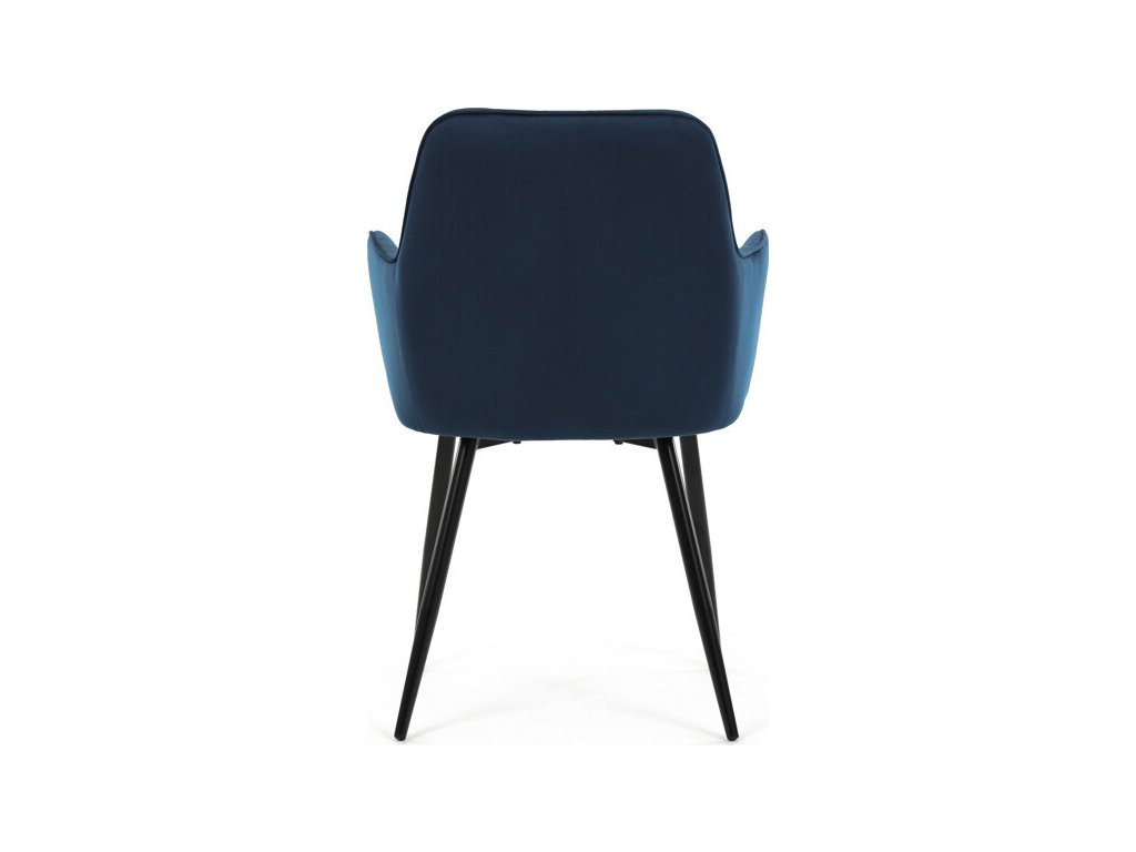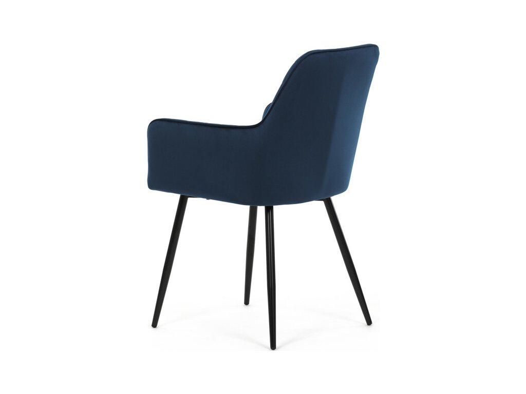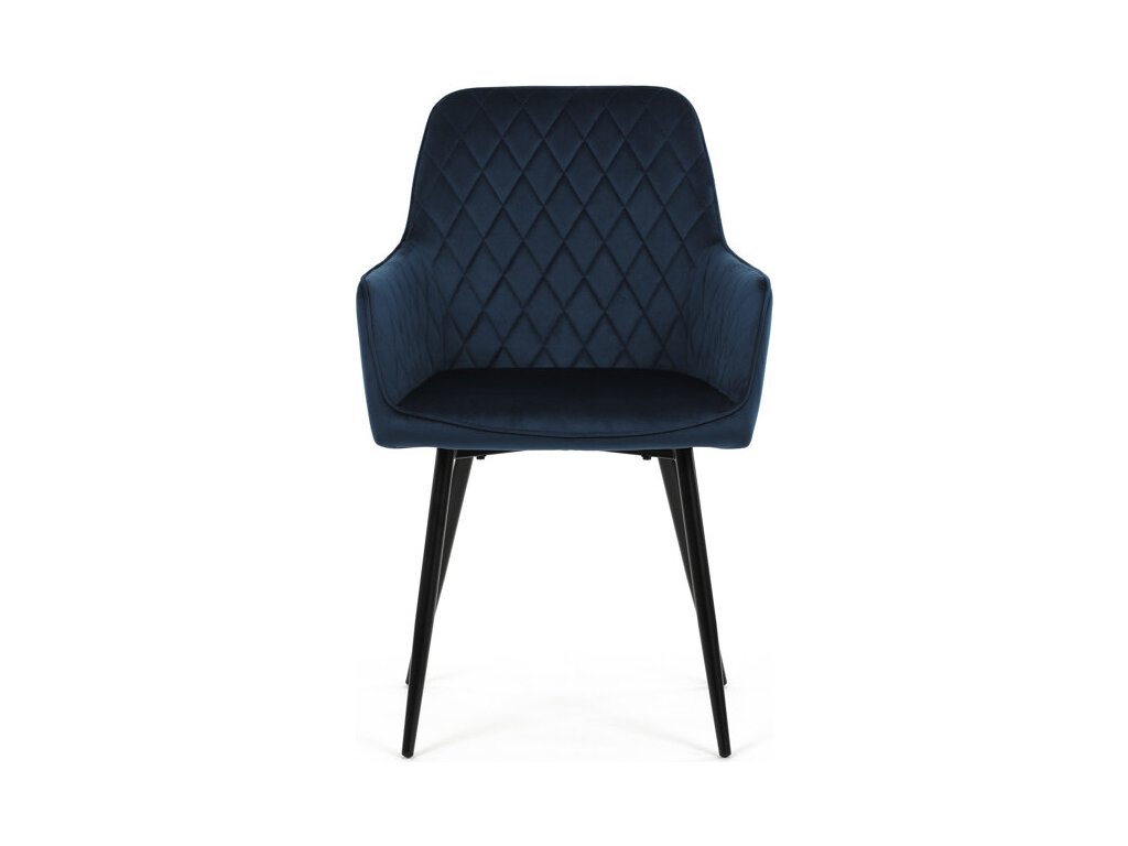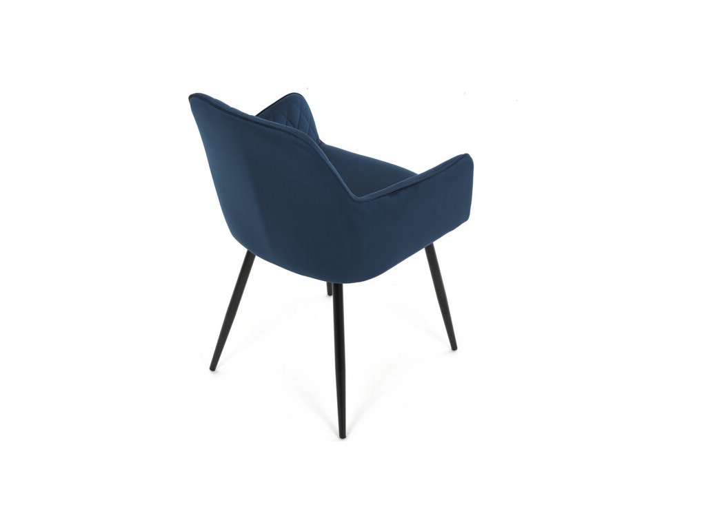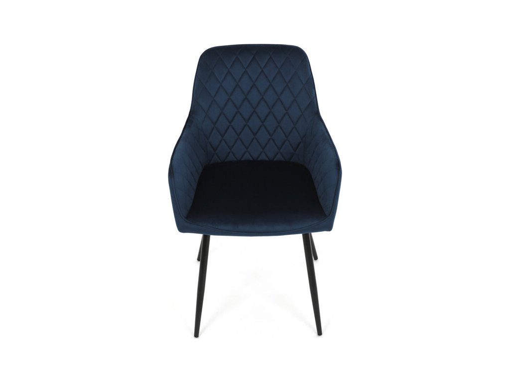 Jídelní židle DCH-215 BLUE4 s potahem z modré sametové látky nabízí příjemný dotek a vizuálně atraktivní design díky prošívání ve tvaru kosočtverců na opěradle a područkách. Pevné kovové nohy v černém matném provedení zajišťují stabilitu a dlouhou životnost. Sedák i opěradlo jsou vyplněné měkkou pěnou, která přispívá k pohodlnému posezení během delších jídel i setkání. Područky jsou integrované do tvaru židle, což podporuje ergonomii a komfort uživatele. Židle je vhodná do moderních interiérů, kde vynikne její elegantní sametový vzhled a kvalitní zpracování.