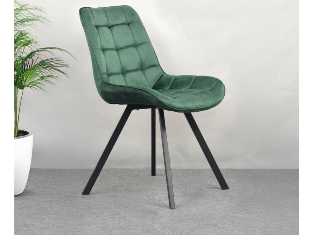 Jídelní židle, tmavě zelená Velvet látka/černá, SAMIRA