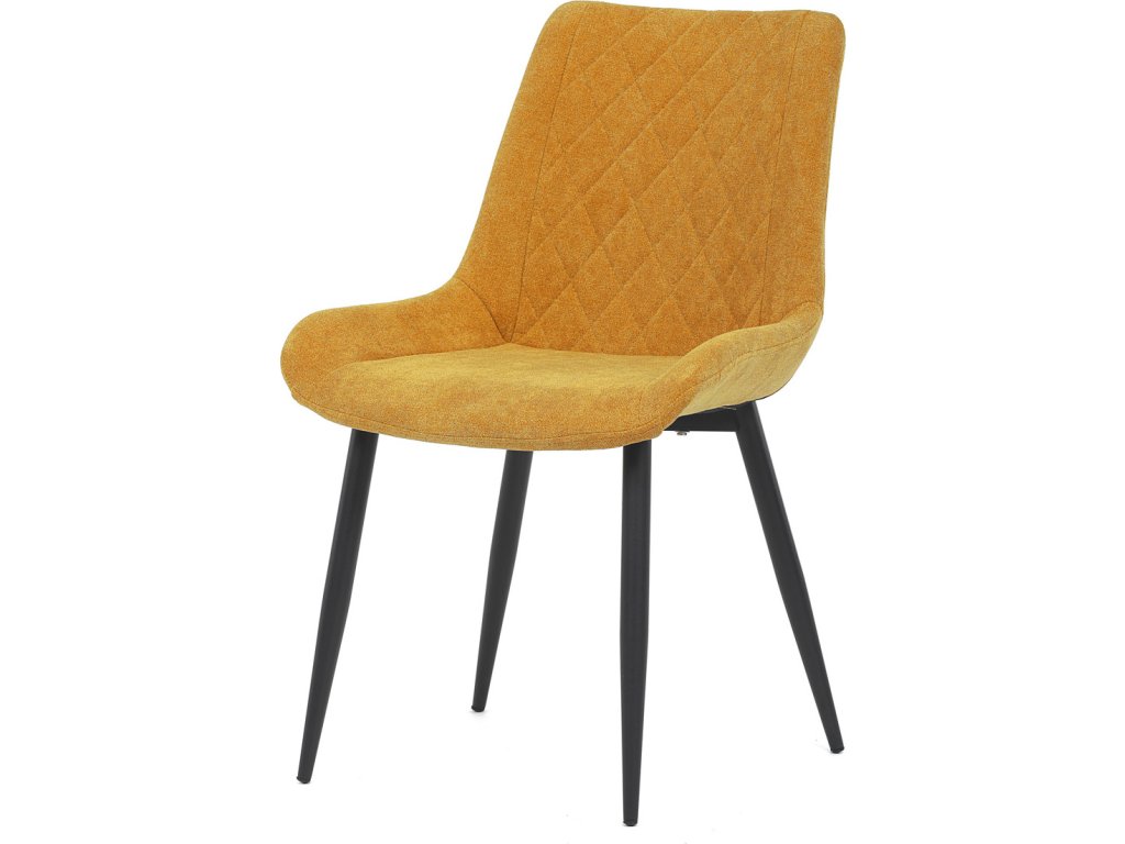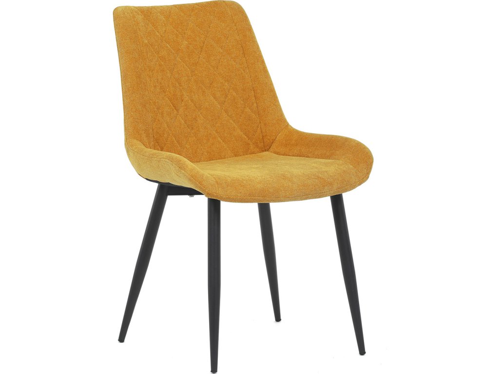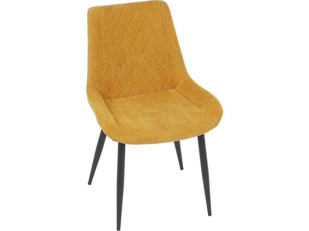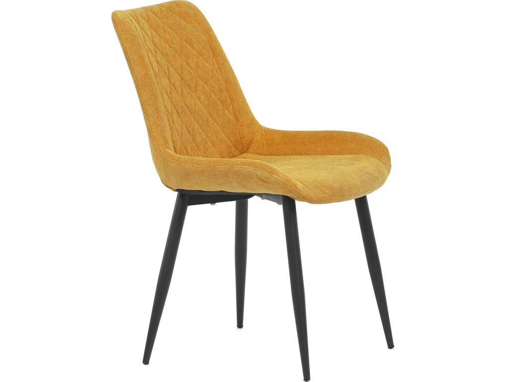 Jídelní židle s označením DCL-218 YEL2 kombinuje pohodlí a moderní design v žlutém látkovém potahu s výrazným prošitím ve tvaru kosočtverců. Sedák a opěradlo jsou ergonomicky tvarované pro příjemné sezení během jídel i delších posezení. Stabilní kovová podnož v černé barvě zajišťuje pevnost a odolnost celé židle, přičemž nohy jsou mírně zkosené pro lepší stabilitu. Absence područek umožňuje snadné zasunutí židle pod stůl a šetří prostor v jídelně. Židle je určena pro běžné domácí použití a její látkový potah je příjemný na dotek a snadno se udržuje.