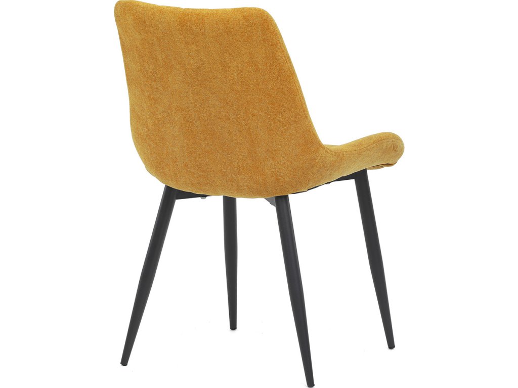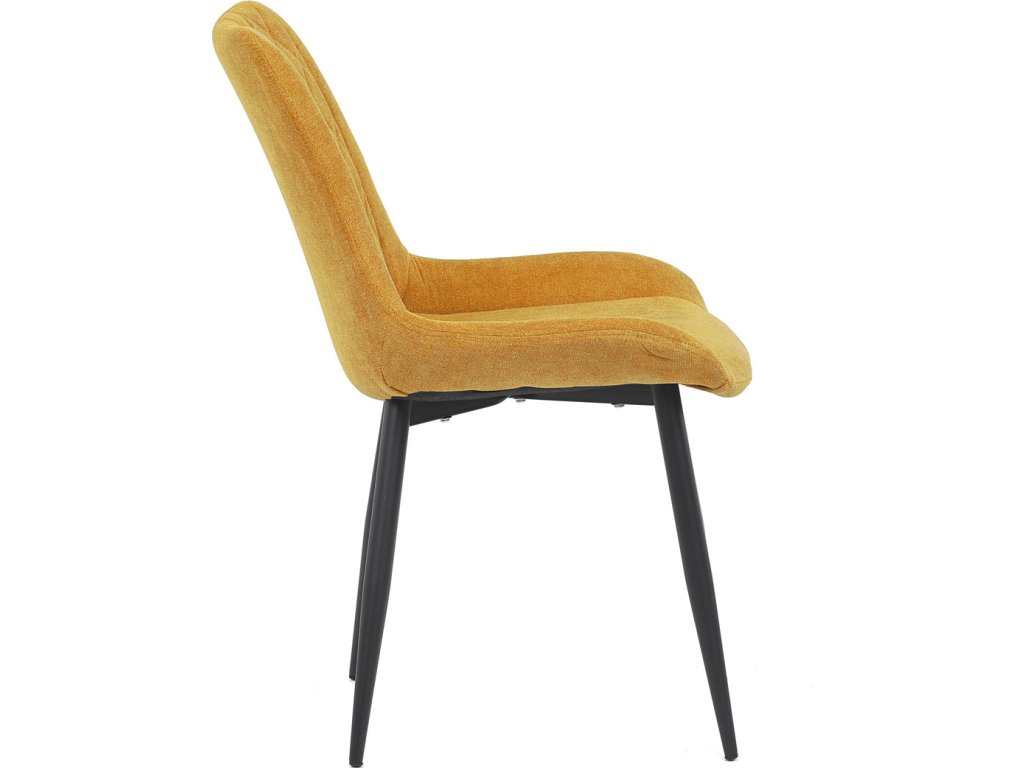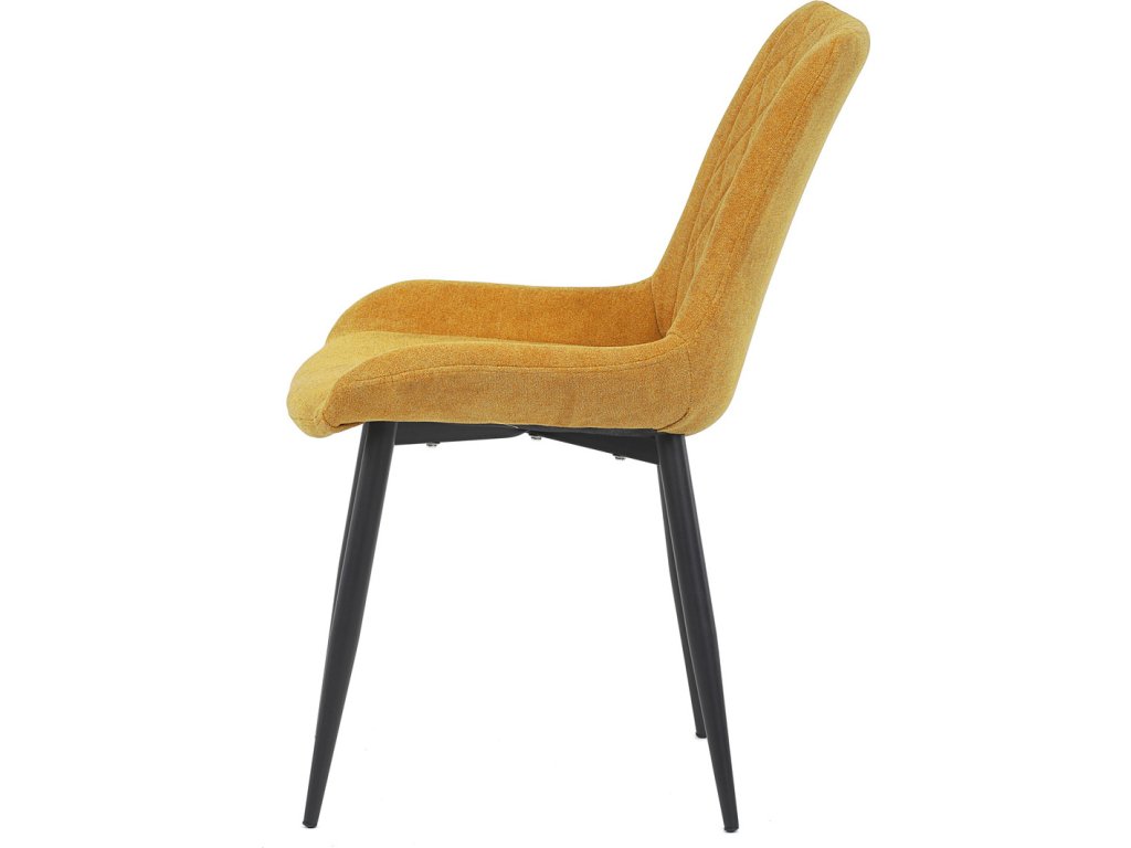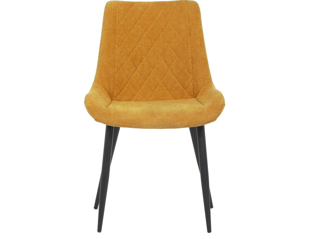 Jídelní židle s označením DCL-218 YEL2 kombinuje pohodlí a moderní design v žlutém látkovém potahu s výrazným prošitím ve tvaru kosočtverců. Sedák a opěradlo jsou ergonomicky tvarované pro příjemné sezení během jídel i delších posezení. Stabilní kovová podnož v černé barvě zajišťuje pevnost a odolnost celé židle, přičemž nohy jsou mírně zkosené pro lepší stabilitu. Absence područek umožňuje snadné zasunutí židle pod stůl a šetří prostor v jídelně. Židle je určena pro běžné domácí použití a její látkový potah je příjemný na dotek a snadno se udržuje.