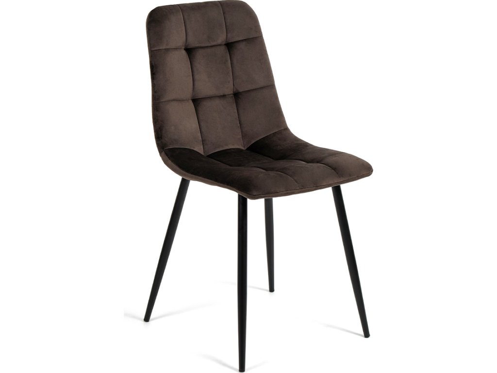 Elegantní židle s nadčasovým designem. Pohodlné čalounění v hnědém sametovém provedení s prošíváním. Stabilní kovové nohy v černé barvě. Vhodná do jídelny, obývacího pokoje i pracovny. Spojení komfortu, stylu a odolnosti.
