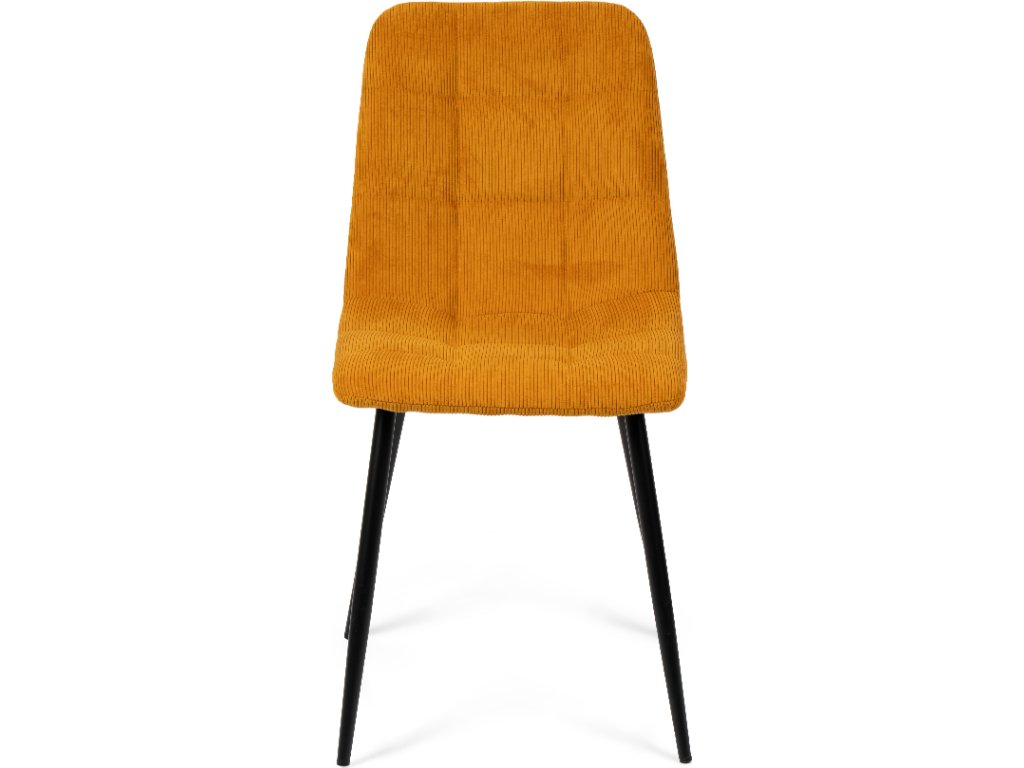 Stylová židle s moderním designem. Pohodlné čalounění v hořčicově žluté manšestrové látce s prošíváním. Stabilní kovové nohy v černém provedení. Vhodná do jídelny, obývacího pokoje i pracovny. Spojuje komfort, odolnost a výrazný barevný akcent.