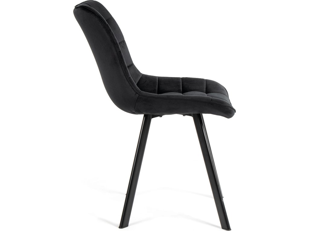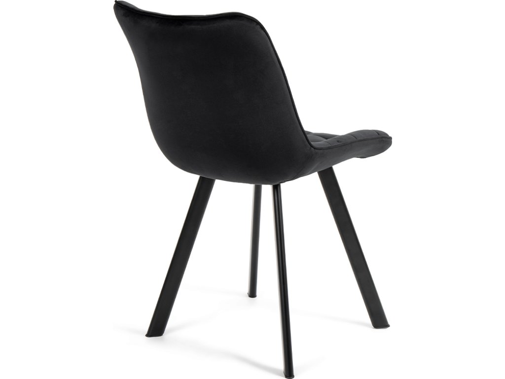 Jídelní židle Bella v černém sametu nabízí kombinaci pohodlí a střídmého designu, který v interiéru působí klidně a elegantně. Sametová látka je měkká na dotek a v kombinaci s prošíváním sedáku vytváří příjemný vizuální i praktický dojem.