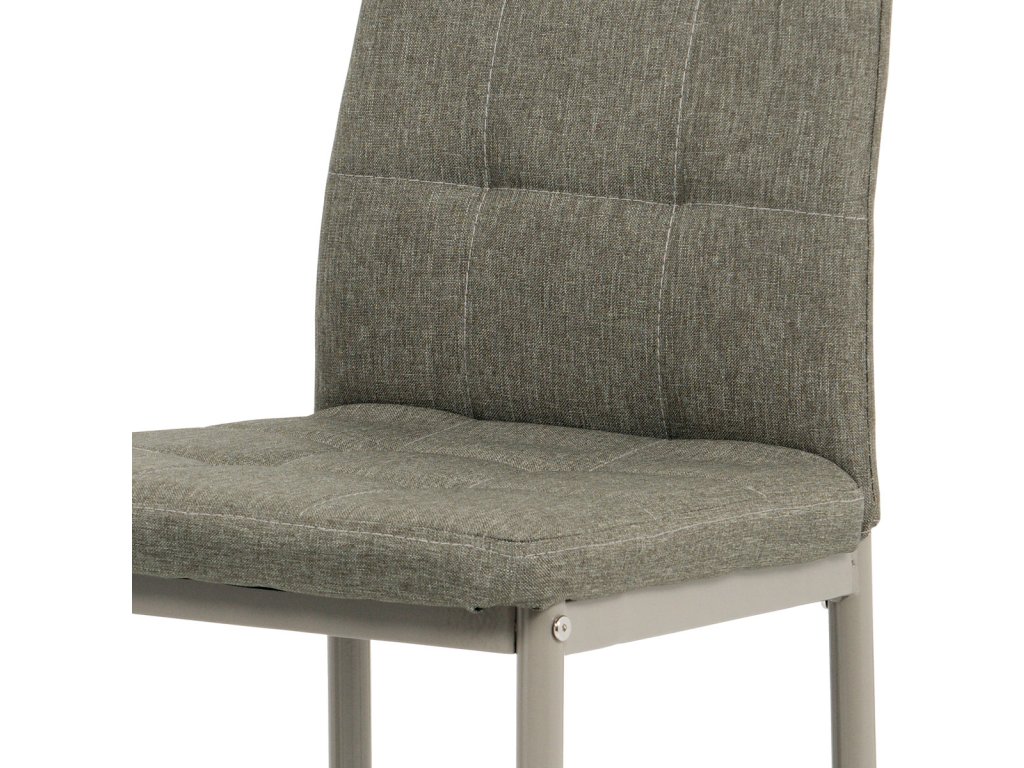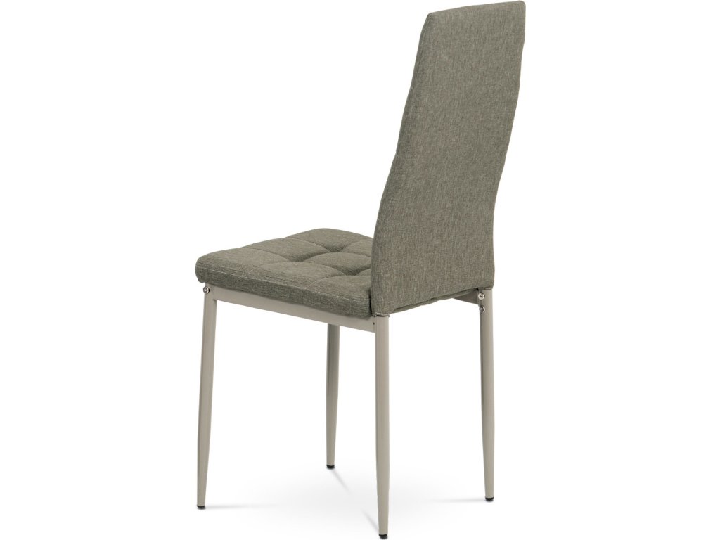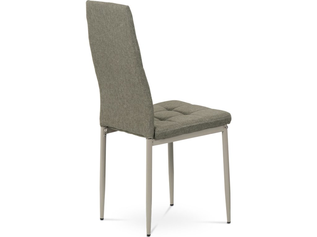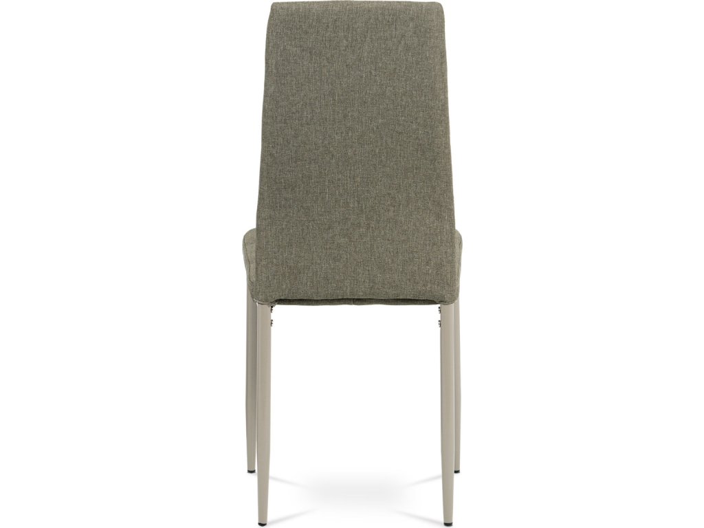 Jídelní židle v industriálním stylu a minimalistickém designu. Je potažena středně hrubou látkou v trendy odstínu dark cappuccino s výrazným čtvercovým prošitím s čalounickými vtahy sedáku i opěráku. Polstrování je z kvalitní PU pěny. Čtyřnohá podnož je kovová, s povrchovou úpravou cappuccino matnou práškovou barvou. Nohy jsou kruhového průřezu a kónické, na koncích jsou opatřeny černými plastovými kluzáky, které minimalizují nebezpečí poškození povrchu podlahy na minimum. Nosnost židle je až 110 kg. Tato židle najde platné využití v prostorách domácí jídelny či kuchyně.