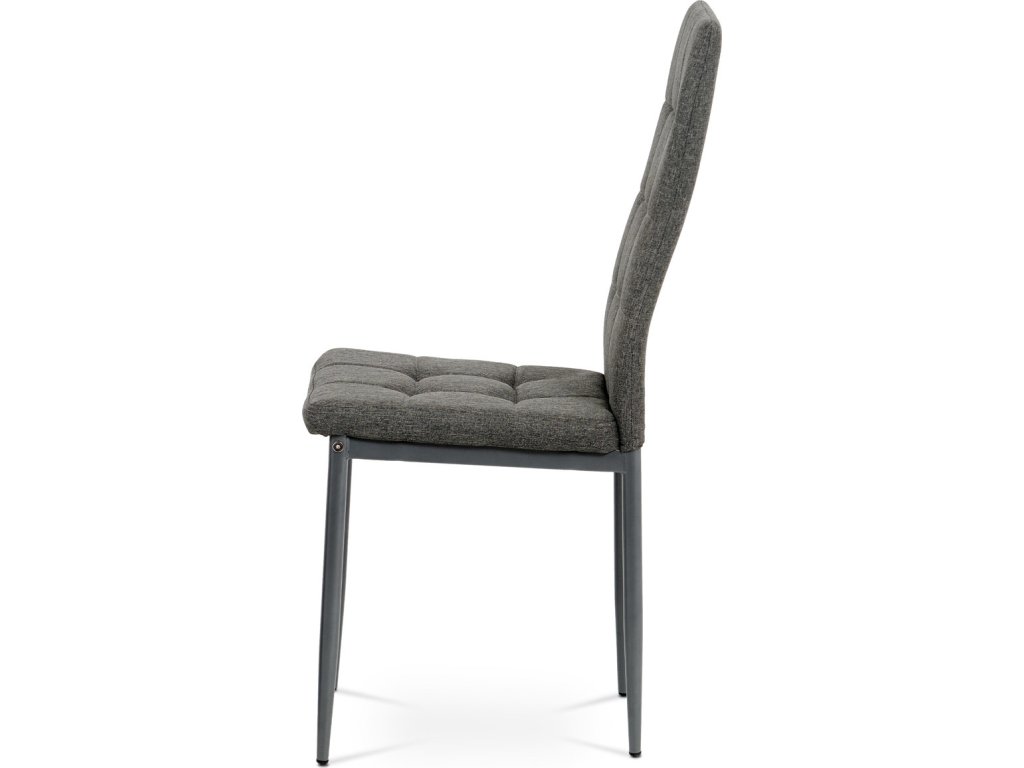 Jídelní židle v industriálním stylu a minimalistickém designu. Je potažena středně hrubou tmavě šedou látkou s výrazným čtvercovým prošitím s čalounickými vtahy sedáku i opěráku. Polstrování je z kvalitní PU pěny. Čtyřnohá podnož je kovová, s povrchovou úpravou antracitovou matnou práškovou barvou. Nohy jsou kruhového průřezu a kónické, na koncích jsou opatřeny černými plastovými kluzáky, které minimalizují nebezpečí poškození povrchu podlahy na minimum. Nosnost židle je až 110 kg. Tato židle najde platné využití v prostorách domácí jídelny či kuchyně.