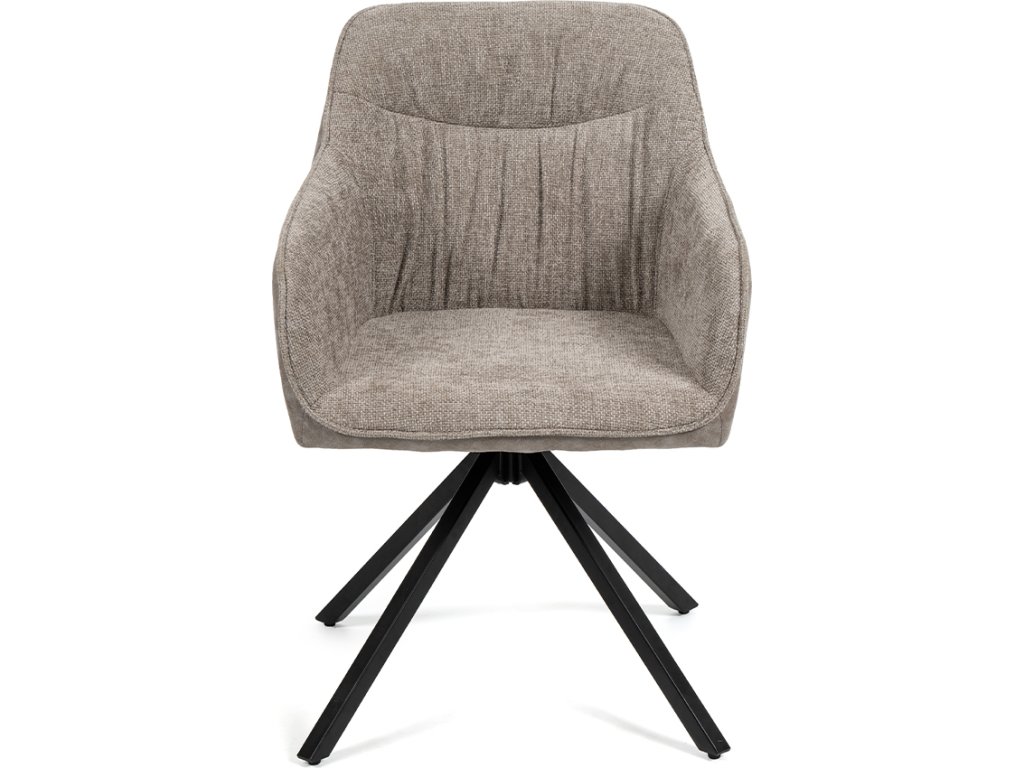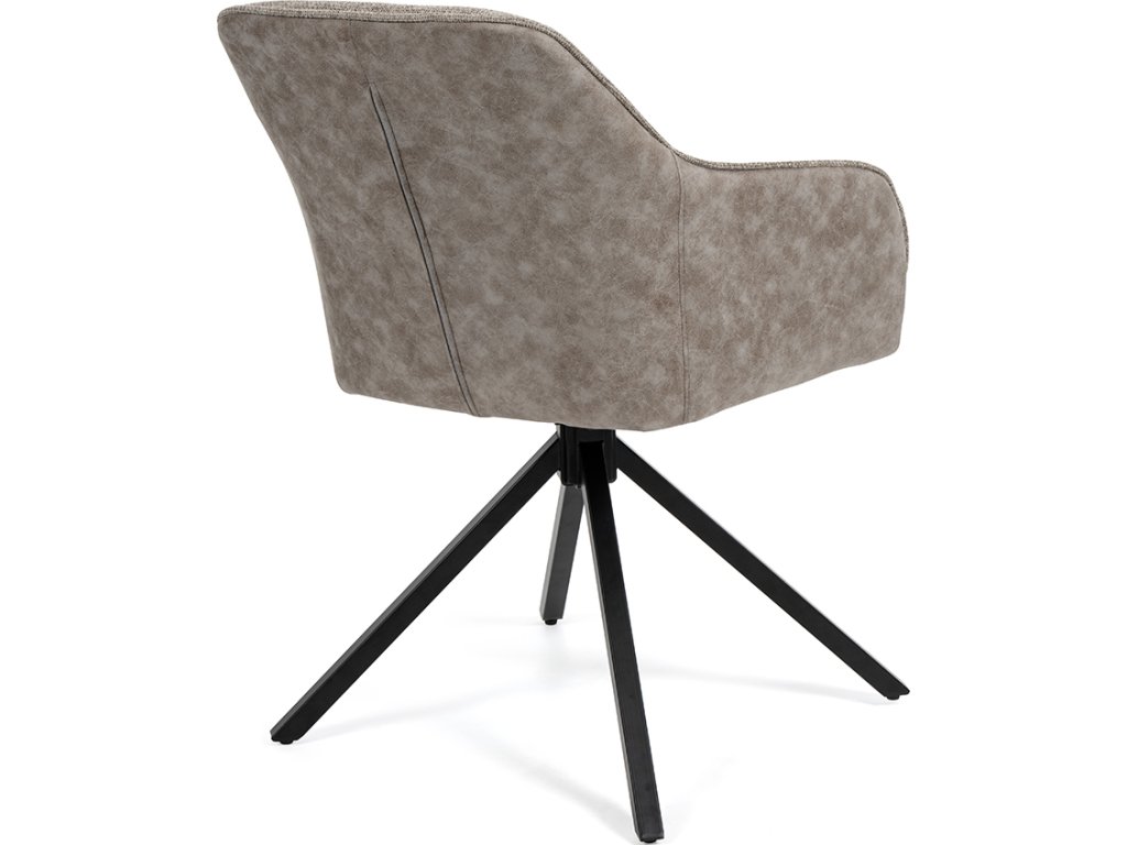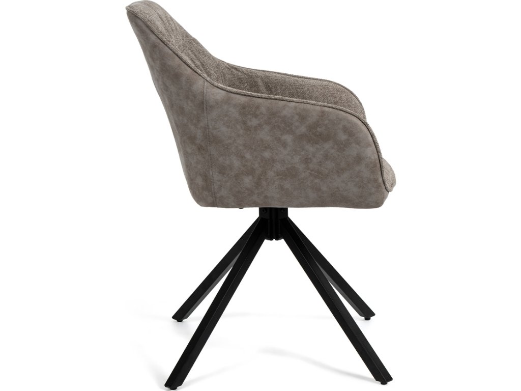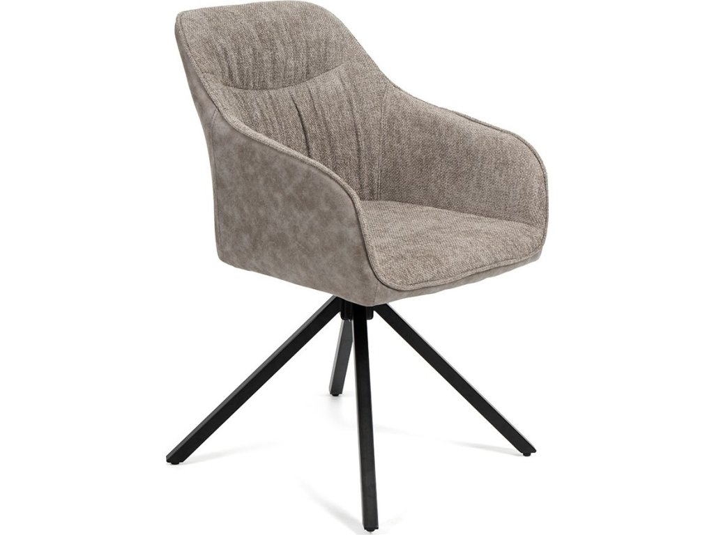 Stylová židle s područkami a moderním vzhledem. Pohodlné čalounění v šedé látce s elegantním kontrastním korpusem. Stabilní kovová podnož s otočnou funkcí. Skvěle se hodí do jídelny, pracovny i kanceláře. Spojuje komfort, praktičnost a nadčasový design.