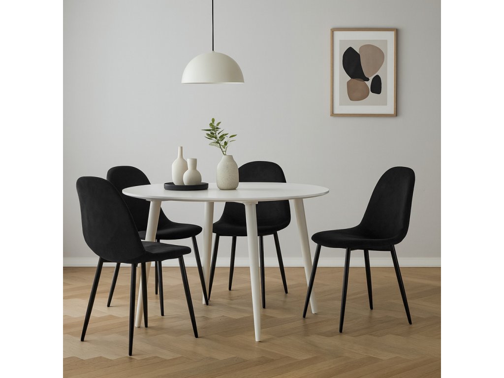 Jídelní židle s ocelovým podnožím v černé barvě, sametový potah, 85x45x52 cm. Tloušťka oceli 0,9 mm.