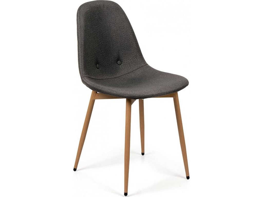Moderní židle s elegantním designem. Pohodlné čalounění v tmavě šedé barvě s dekorativními knoflíky. Stabilní nohy v dekoru dřeva pro přírodní vzhled. Vhodná do jídelny, kuchyně i pracovny. Kombinace komfortu, jednoduchosti a stylového provedení.