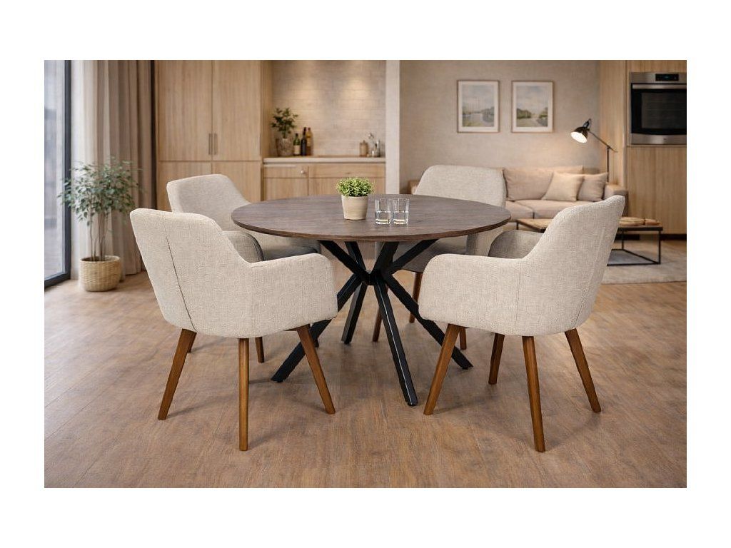 Tato stylová čalouněná židle vyniká nadčasovým designem, který se snadno sladí s moderním i klasickým interiérem. Jemně tvarované opěradlo s integrovanými područkami poskytuje pohodlné a stabilní sezení, ať už u jídelního stolu, v pracovně nebo v obývacím prostoru.