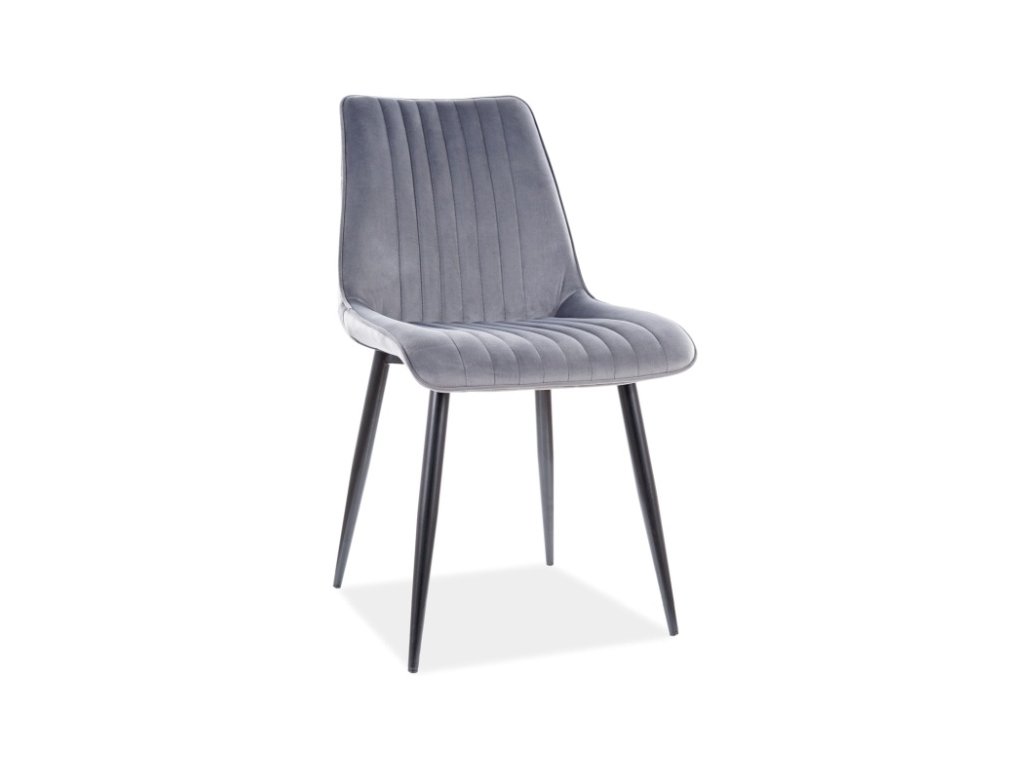 CASA 11883 Elegantní čalouněná jídelní židle - křeslo. Konstrukce je z kovu v barvě černá mat. Čalounění židle je z potahové látky velvet aksamit v šedé barvě. Dodáváme v demontovaném stavu.