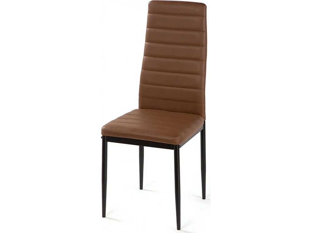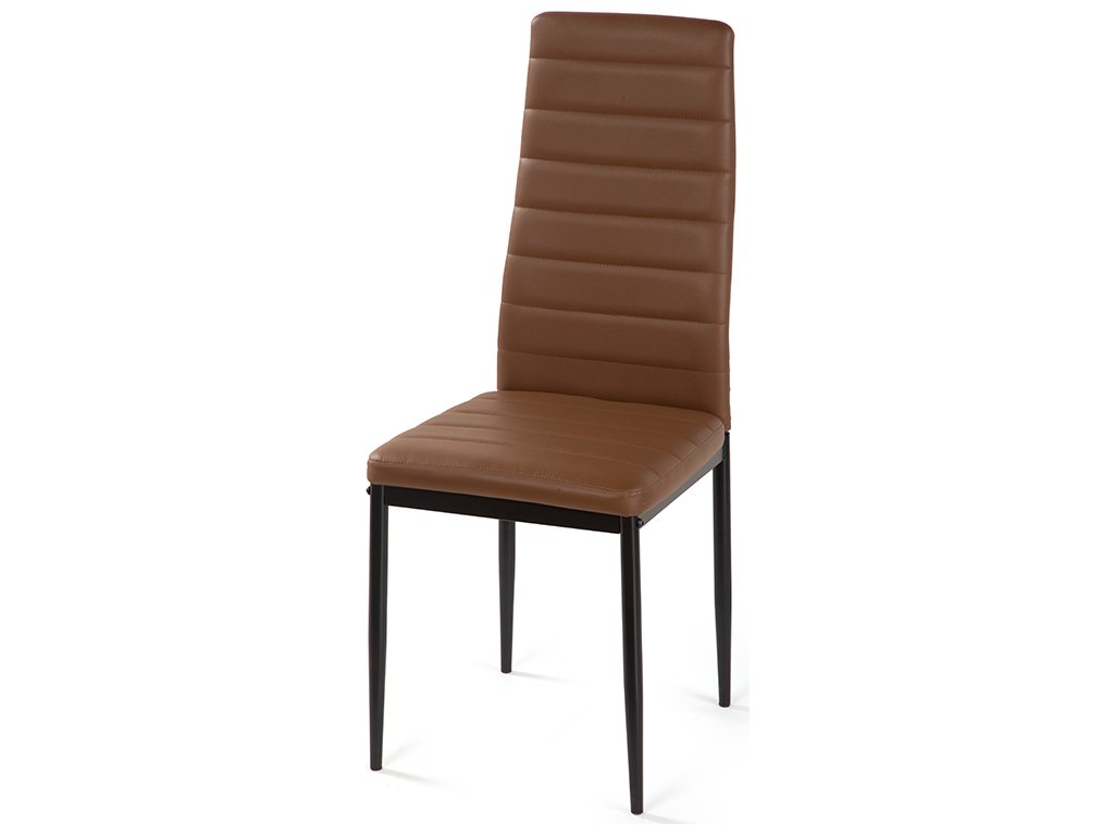 Jídelní židle s čalouněním v hnědé eko kůži nabízí pohodlné a stabilní sezení nejen pro každodenní stolování. Vysoké opěradlo s horizontálním prošitím podporuje správné držení zad, zatímco sedák poskytuje dostatečný komfort.