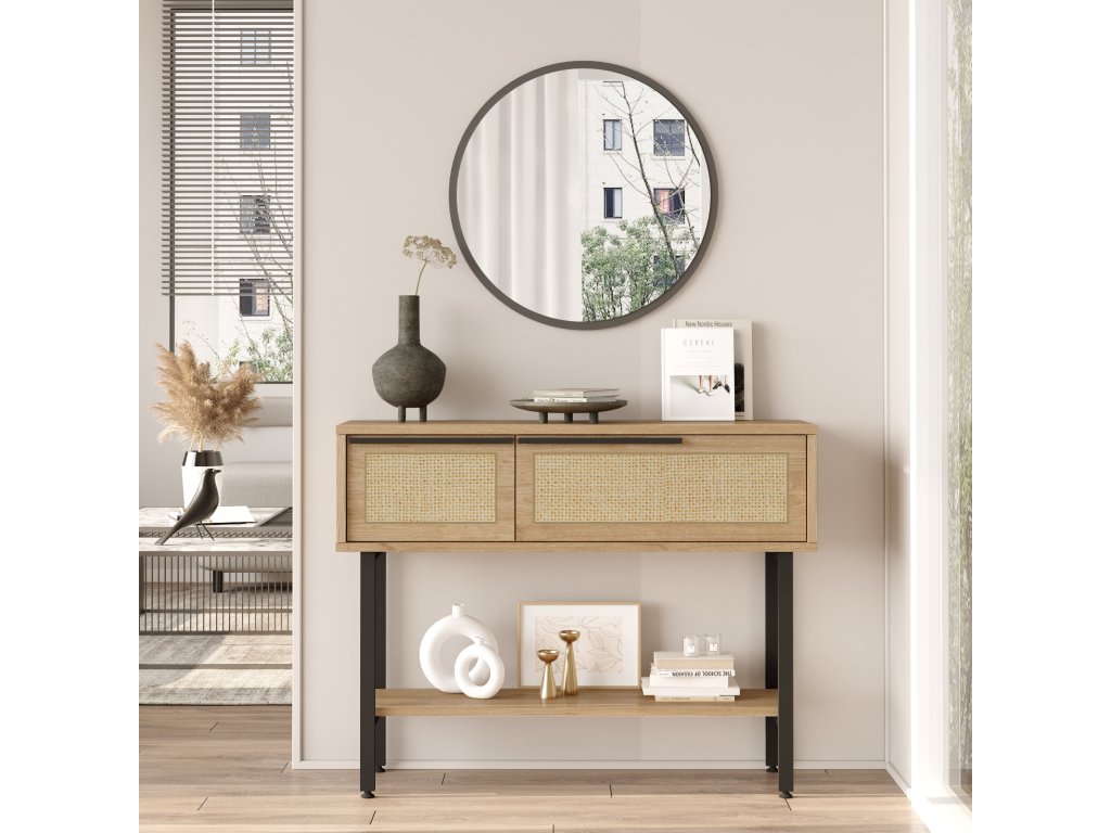 JUAREZ konzolový stolek se zrcadlem, sepet/jutový vzor