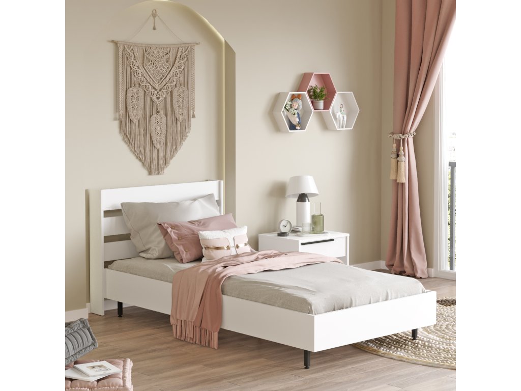 Jednolůžko je ideálním řešením pro moderní ložnici nebo dětský pokoj. Vyrobeno z kvalitního LTD materiálu a kovu, nabízí odolnost, pohodlí a moderní vzhled. Díky rozměrům 100 x 200 cm poskytuje dostatek prostoru pro jednoho, zatímco jeho design a barva snadno zapadnou do jakéhokoli interiéru.