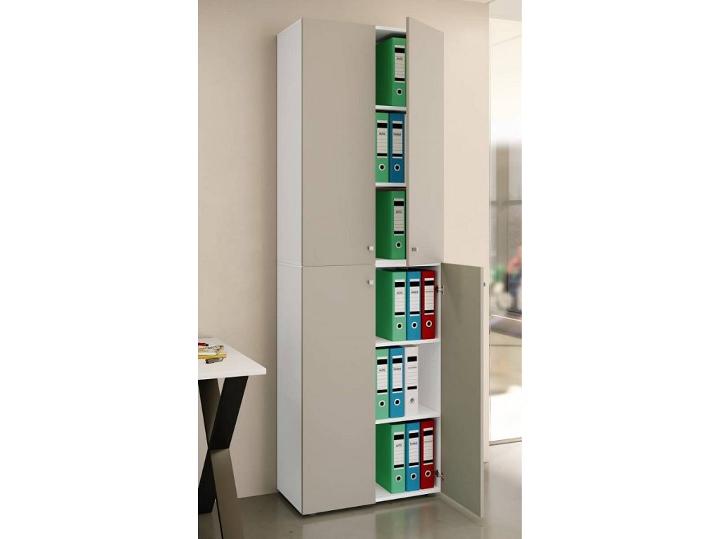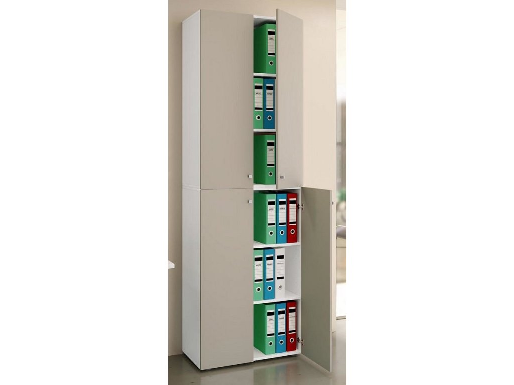 Kancelářská skříň Lona 2XL s otočnými dveřmi, bílá