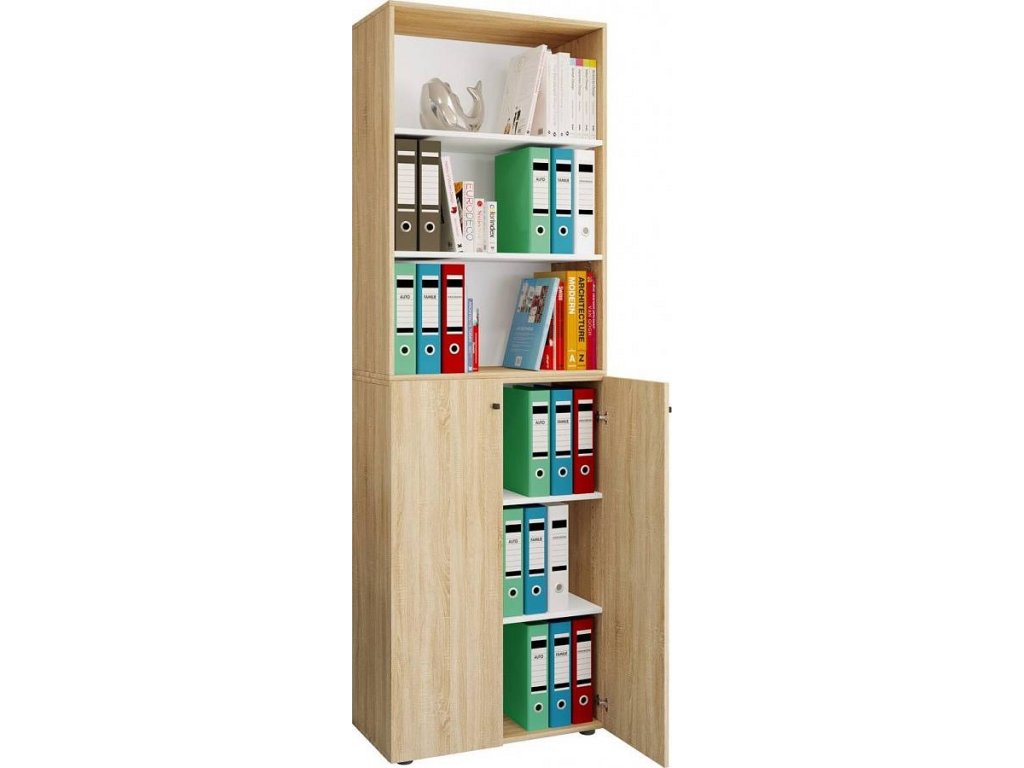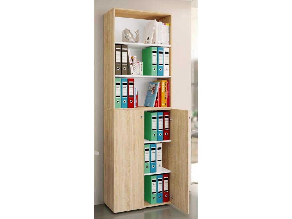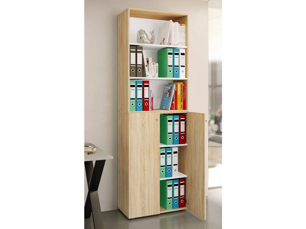 Kancelářská skříň Lona 2XL s otočnými dveřmi + policí, dub sonoma