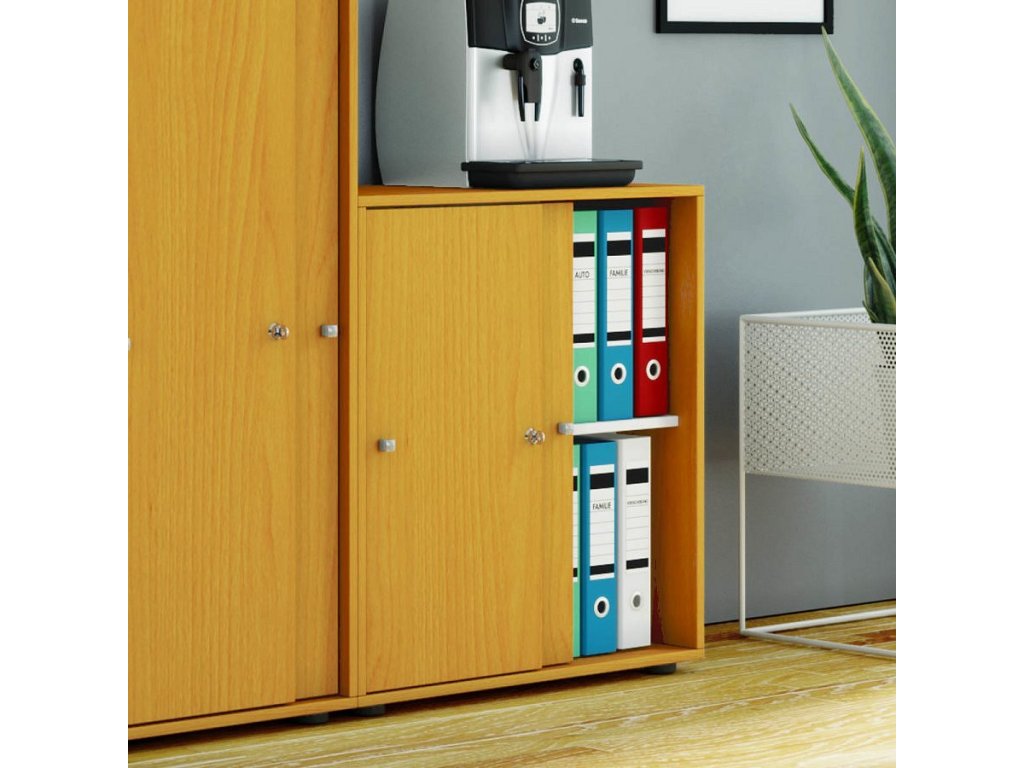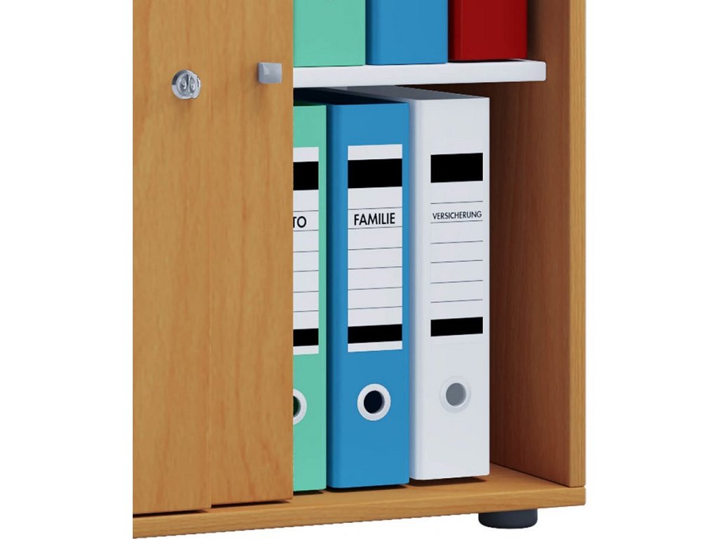 Skříň poskytuje dostatek úložného prostoru, například pro 14 složek, ale i mnoho dalšího. Praktické posuvné dveře jsou opatřeny zámkem.