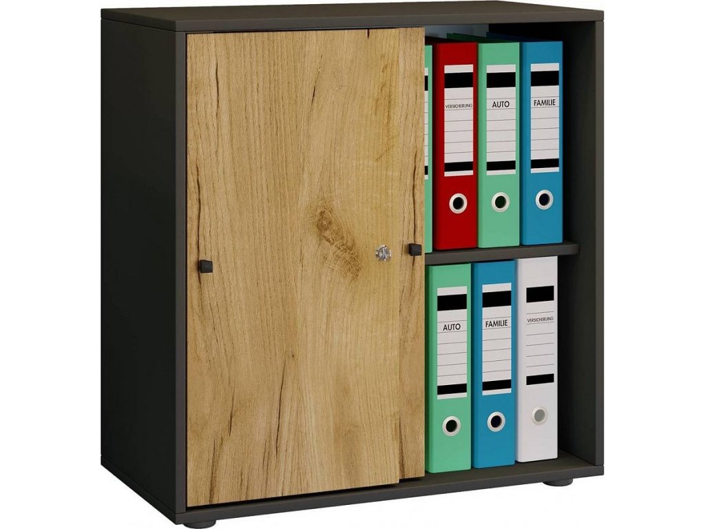 Kancelářská skříň Lona L s posuvnými dveřmi, antracitová