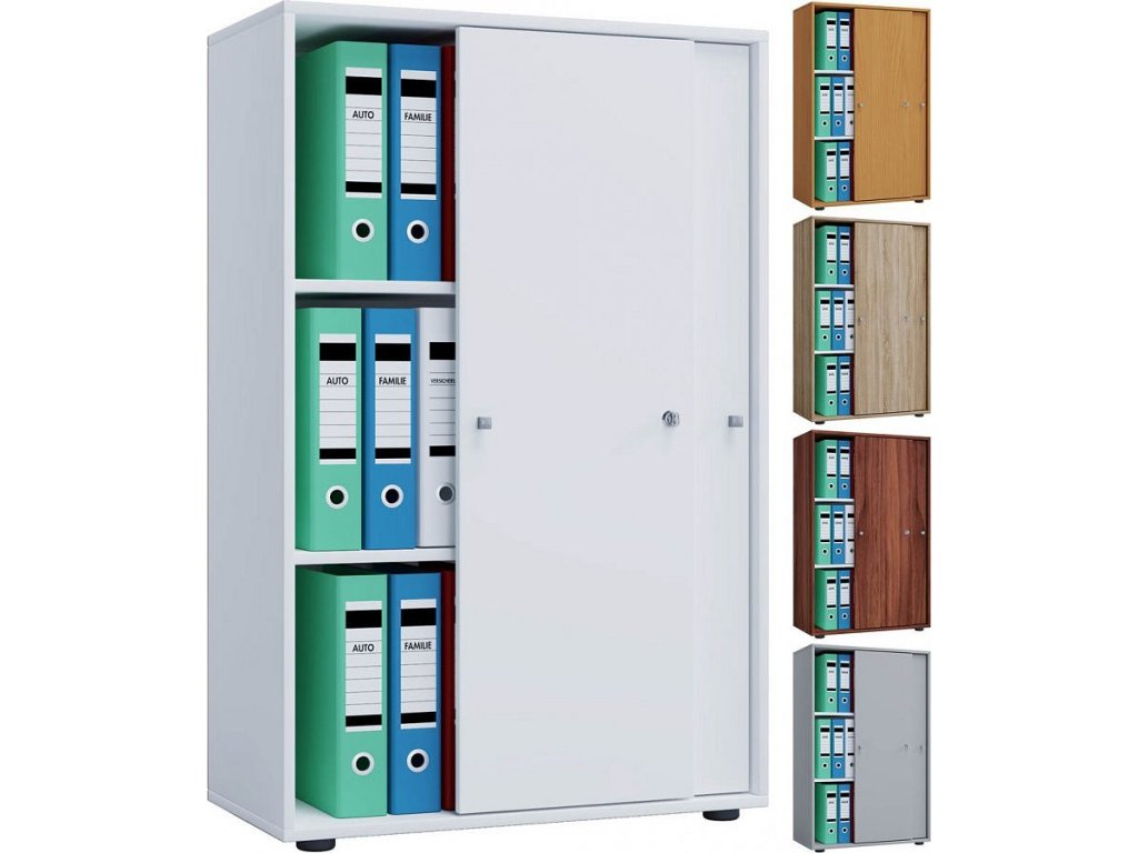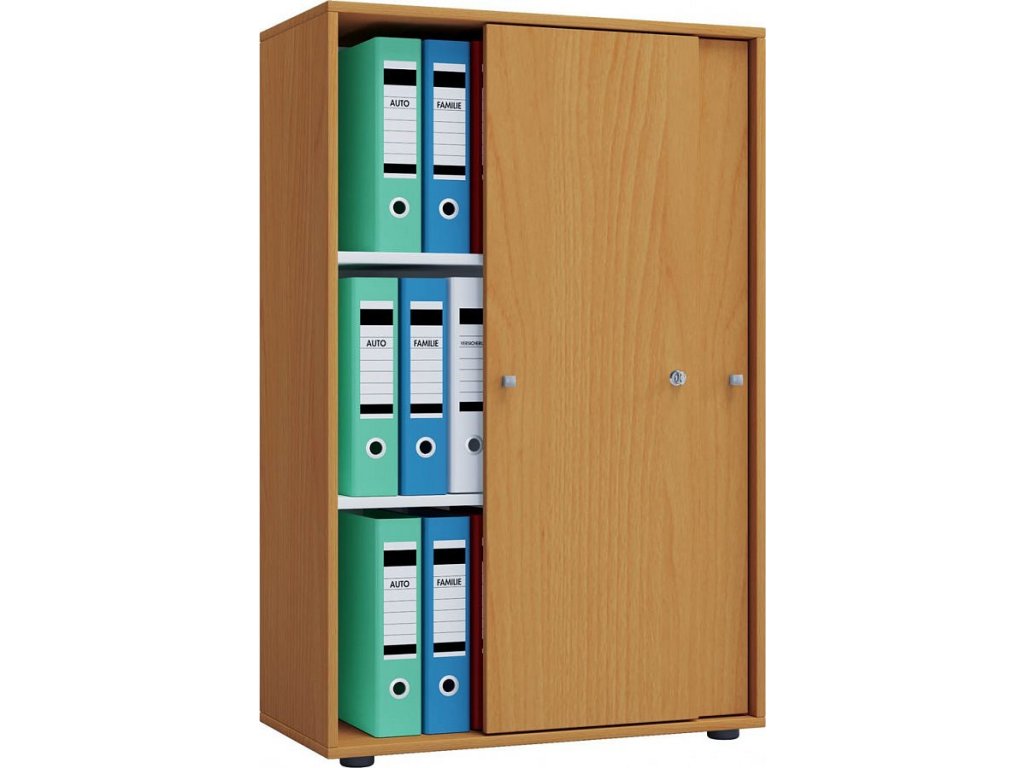 Skříň se dvěma variabilními policemi poskytuje dostatek úložného prostoru, například pro 21 složek, ale i mnoho dalšího. Praktické posuvné dveře jsou opatřeny zámkem.