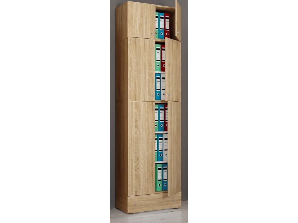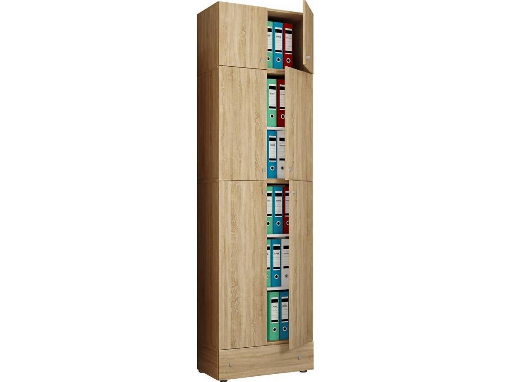 Kancelářská skříň Lona XXL s otočnými dveřmi S nástavcem a zásuvkou, dub sonoma