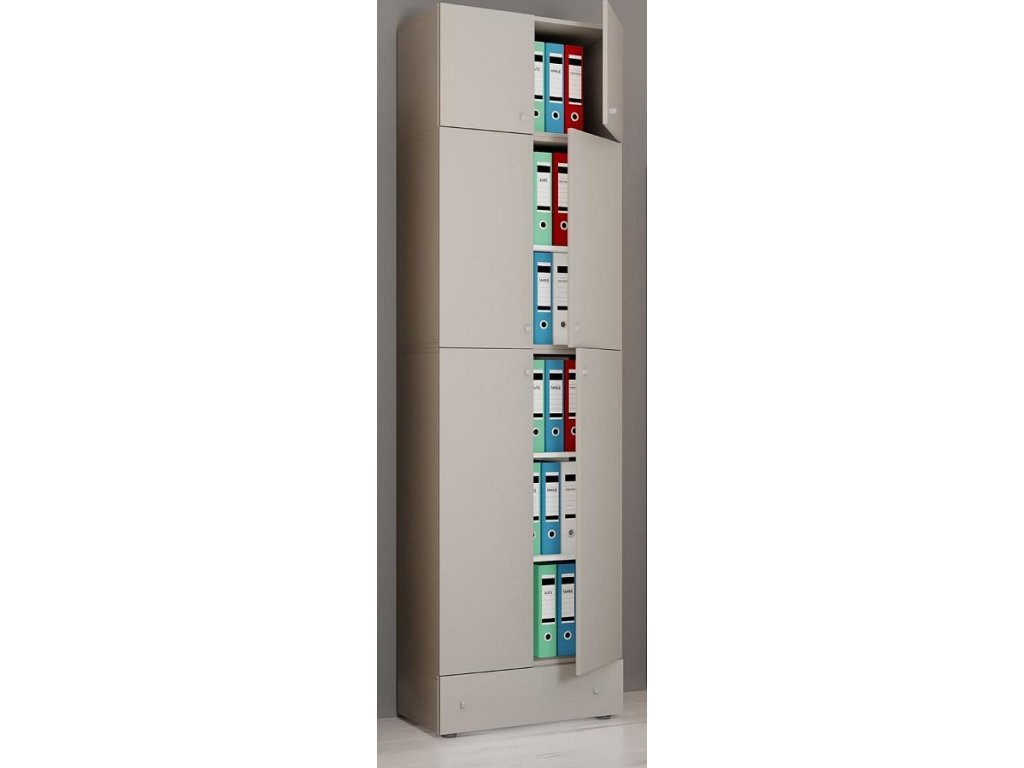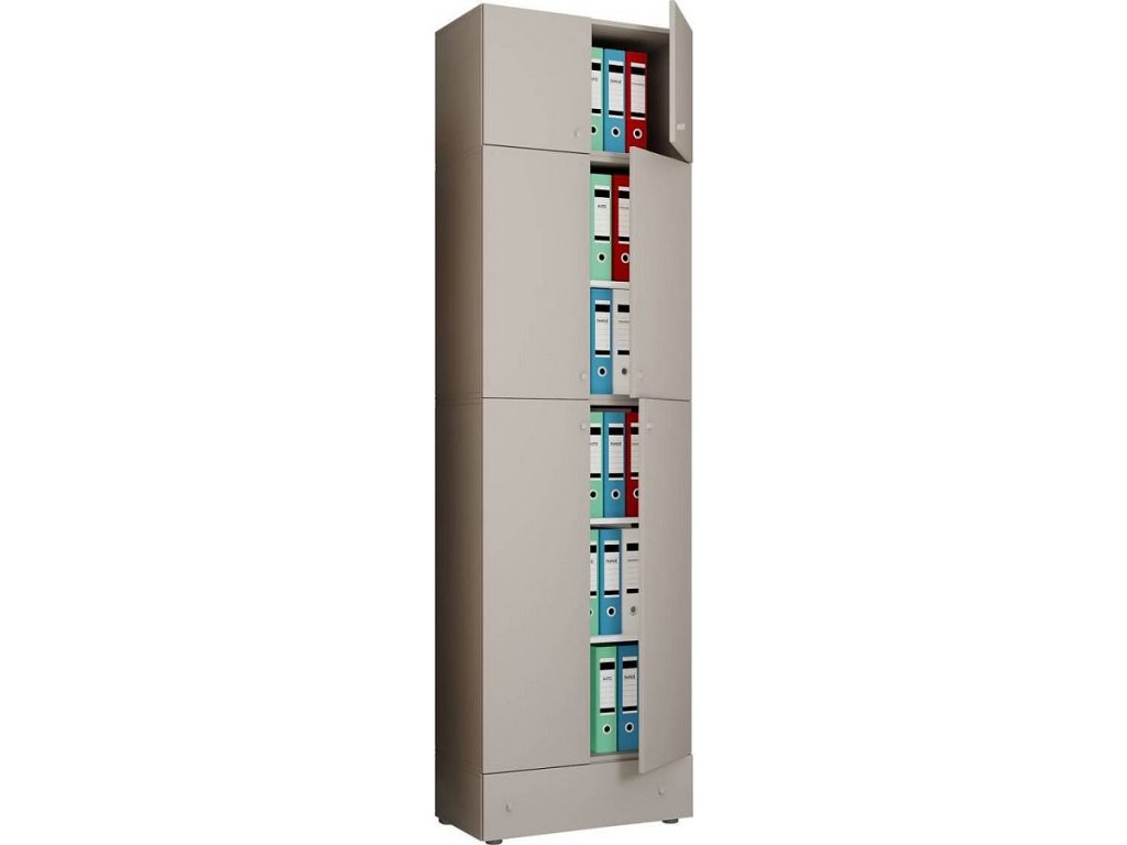 Kancelářská skříň Lona XXL s otočnými dveřmi S nástavcem a zásuvkou, šedá