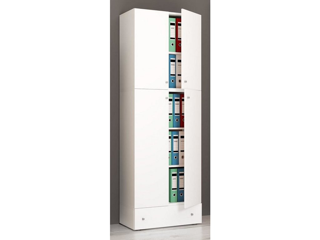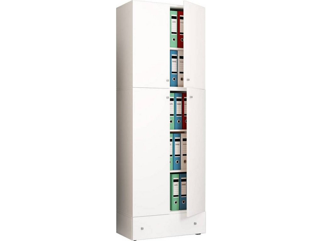 Kancelářská skříň Lona XXL s otočnými dveřmi se zásuvkou, bílá