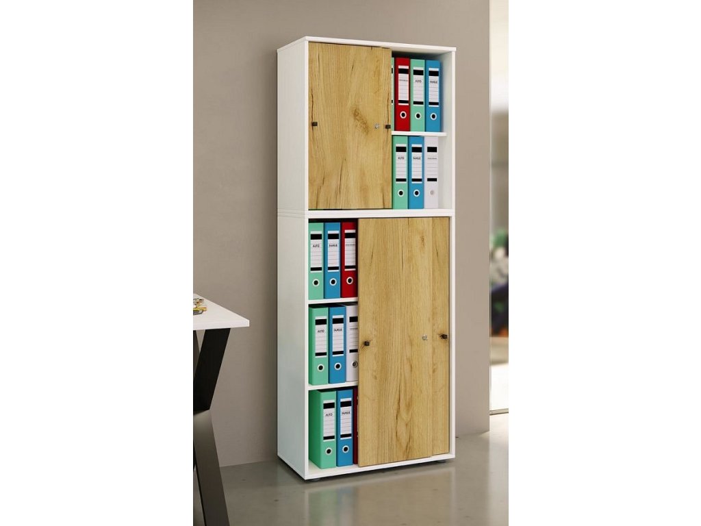 Kancelářská skříň Lona XXL s posuvnými dveřmi, bílá
