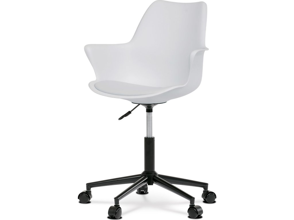 Moderní kancelářská židle Autronic v elegantním bílém provedení je ideálním řešením pro pracovní i konferenční místnosti. Ergonomicky tvarované sedadlo s pevnými područkami poskytuje komfort při delším sezení. Výškově nastavitelný sedák zajistí správné nastavení podle vašich potřeb. Kovový černý kříž a kvalitní kolečka na tvrdé povrchy zaručují stabilitu a snadnou manipulaci. Sedák z hladké ekokůže nejen vypadá, ale také se snadno udržuje. Tento stylový model se hodí do moderních kancelářských prostor a přispěje k pohodlí při práci