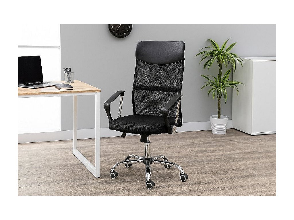 Stabilní chromová základna s kolečky zaručuje hladký pohyb po kanceláři i dlouhou životnost.