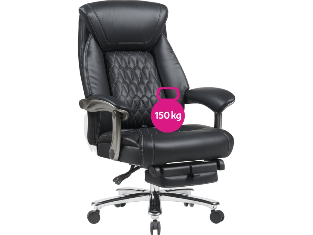 Kancelářské křeslo, černá ekokůže/chrom, nosnost 150 kg, URIEN