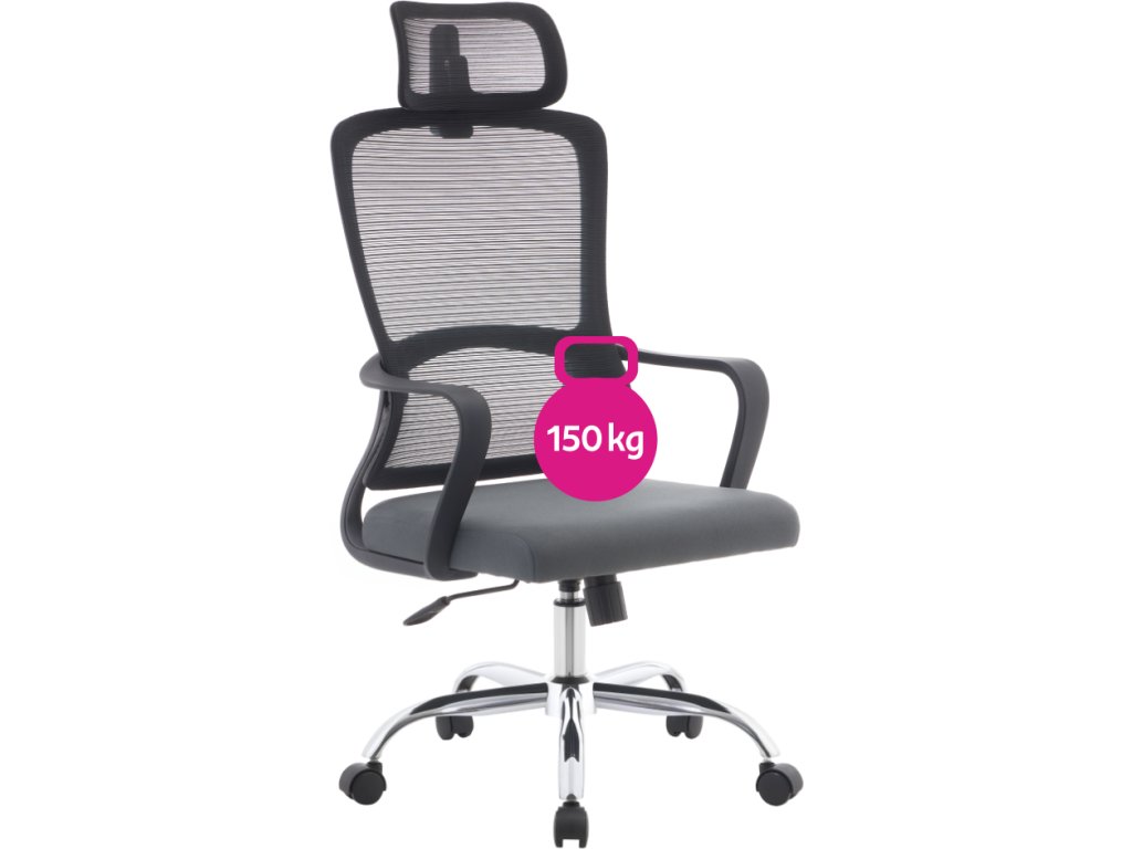 Kancelářské křeslo, černá/šedá/chrom, nosnost 150 kg, RANDY