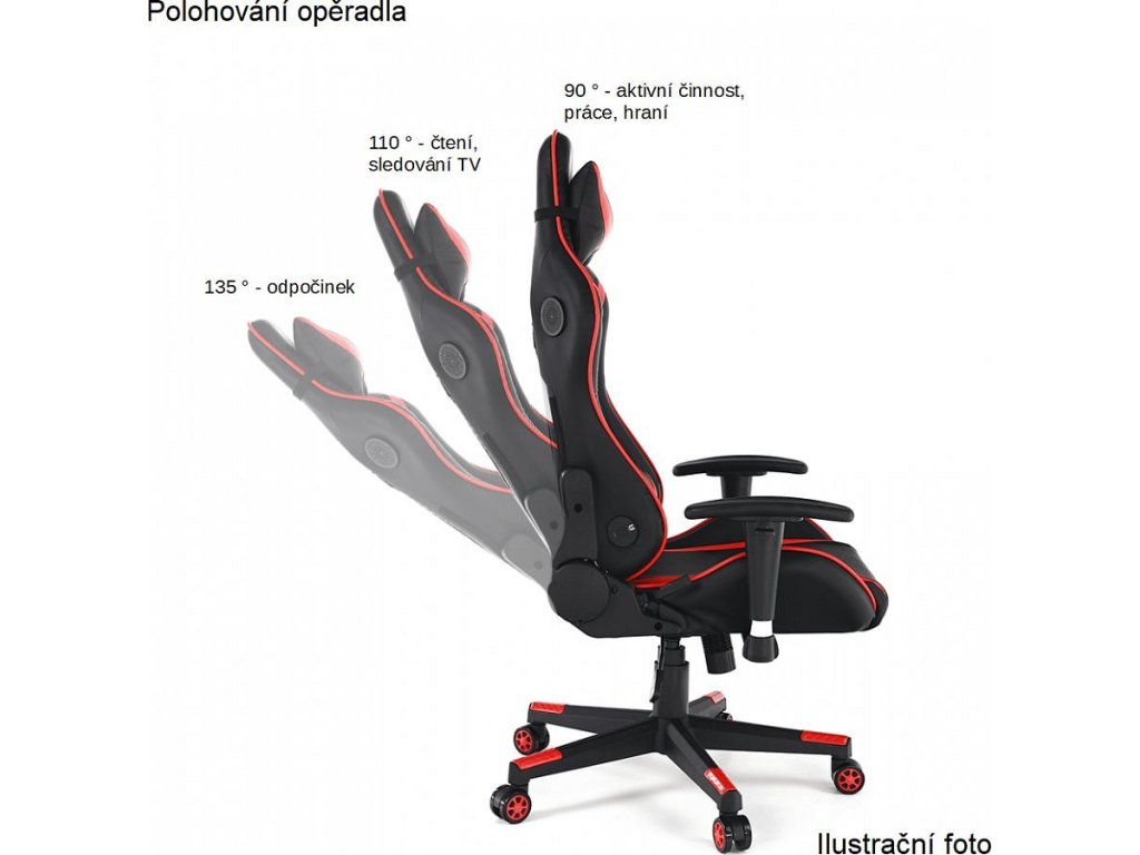 Nastavení sklonu opěradla 90° - 135°