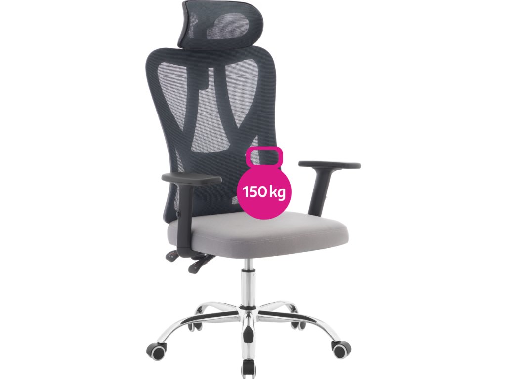 Kancelářské křeslo, tmavě šedá/světle šedá/chrom, nosnost 150 kg, ADEMIR