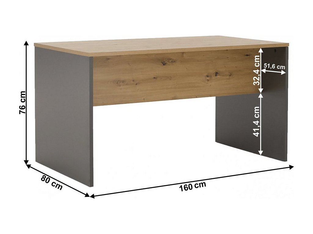 Kancelářský psací stůl RIOMA NEW TYP 16, grafit/dub artisan
