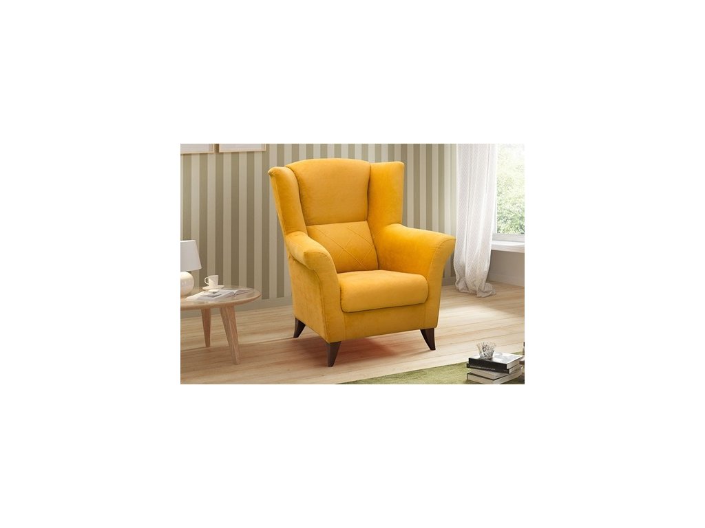 KENTAKUS - křeslo, látka BLUVEL 68-HOŘČICOVÁ/nožky Ořech, NOSNOST 120KG(KENT=1 BALÍK)(IZ)(K250-Z) NOVÁ LÁTKA