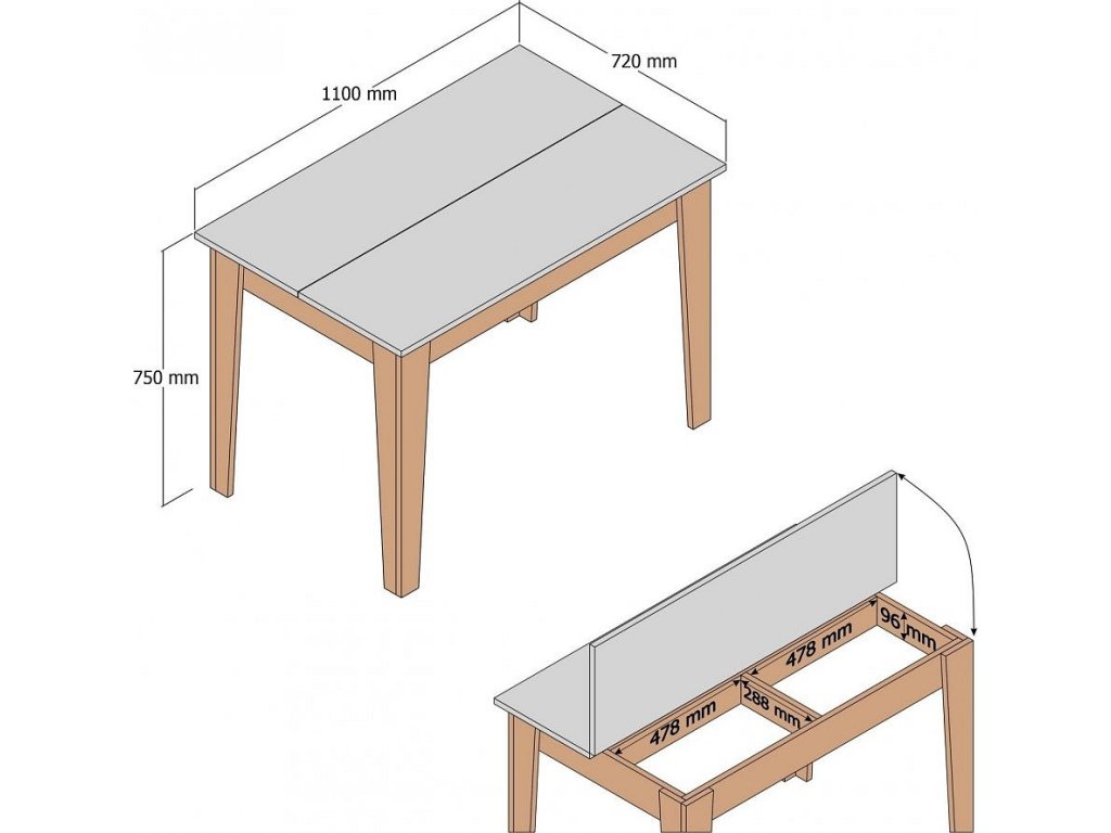 - Rozměry stolu: Šířka: 110 cm, Výška: 75 cm, Hloubka: 72 cm
