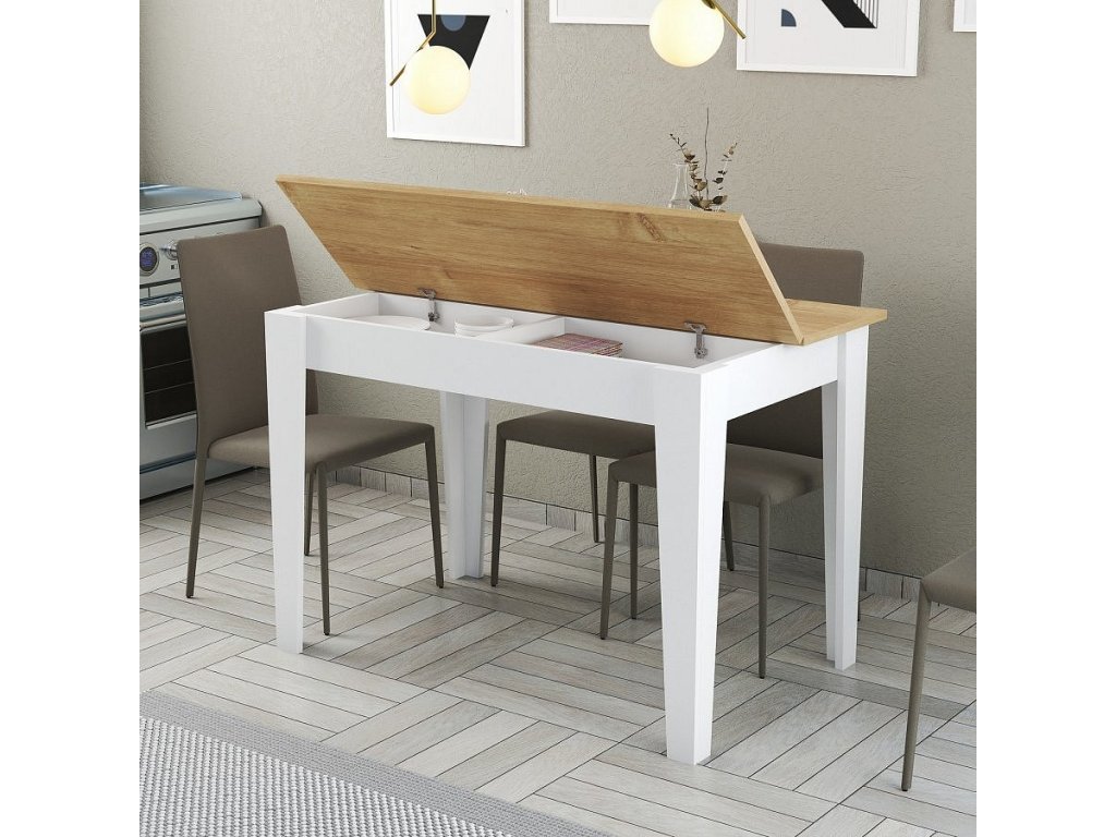 Kiev 512 jídelní stůl s úložným prostorem, bílá / dub