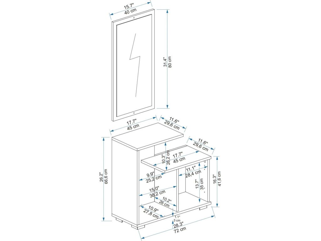 Stolek je ideální řešení pro uspořádání vaší předsíně. Tento moderní a funkční odkládací stolek nabízí praktické vybavení v podobě plného dvířka, odkládací police a integrovaného zrcadla, které vám usnadní každodenní organizaci a dodá vaší předsíni stylový vzhled.
