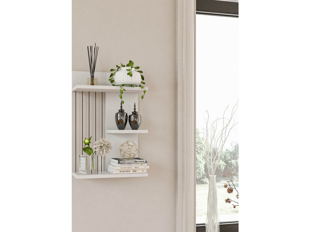 Tuto nástěnnou poličku lze snadno připevnit na zeď, čímž ušetříte cenný prostor na podlaze. Díky kompaktním rozměrům 40 cm na šířku, 60 cm na výšku a 19 cm do hloubky se hodí do každé místnosti, ať už je to obývací pokoj, ložnice nebo kancelář. Bílá barva dodává nádech sofistikovanosti a bezproblémově se hodí do jakéhokoli interiéru.