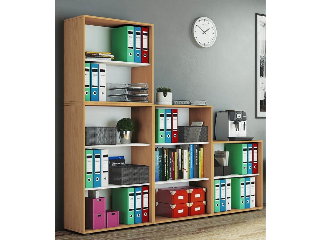 Knihovna má variabilní prostor pro 14 pořadačů, knihy a další pomůcky. Kostra je vyrobena z imitace struktury dřeva a má stabilní zadní panel. Kování je vyrobeno z vysoce kvalitního kovu.