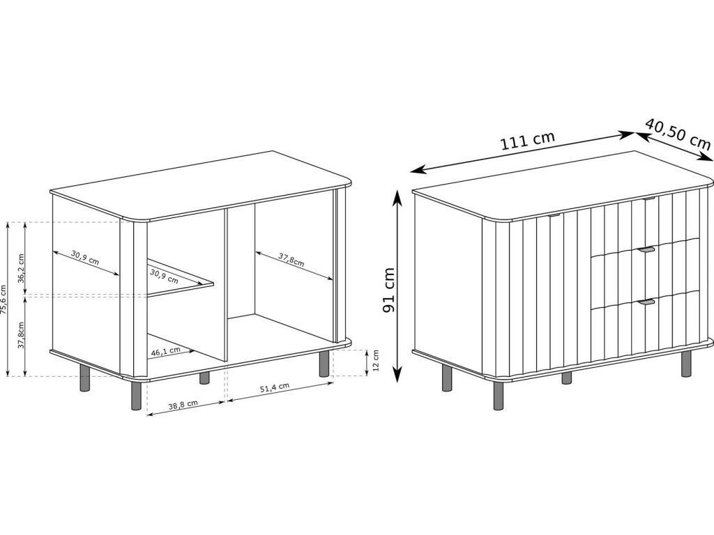 Díky 3 prostorným zásuvkám a jedné skříňce s vnitřními policemi budete mít ve věcech konečně pořádek. Kvalitní výsuvy (soft close) a panty s tichým dovíráním se postarají o každodenní komfort. Rozměry viz obrázek.