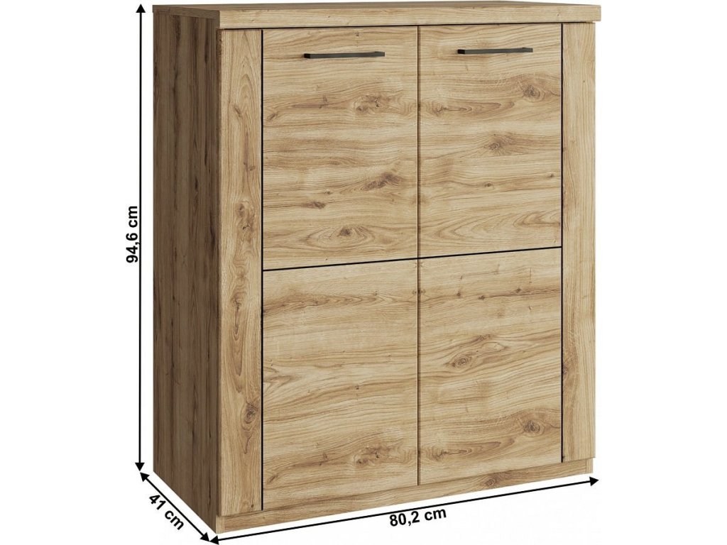 Komoda DORSI 2D Materiál: DTD laminovaná/MDF Barva: dub navarra Rozměry (ŠxHxV): 80,2x41x94,6 cm Tloušťka materiálu: 1,6 cm Dvoudveřová Policová Plastové úchytky Barva úchytek: černá Moderní design Dodáváno v demontu